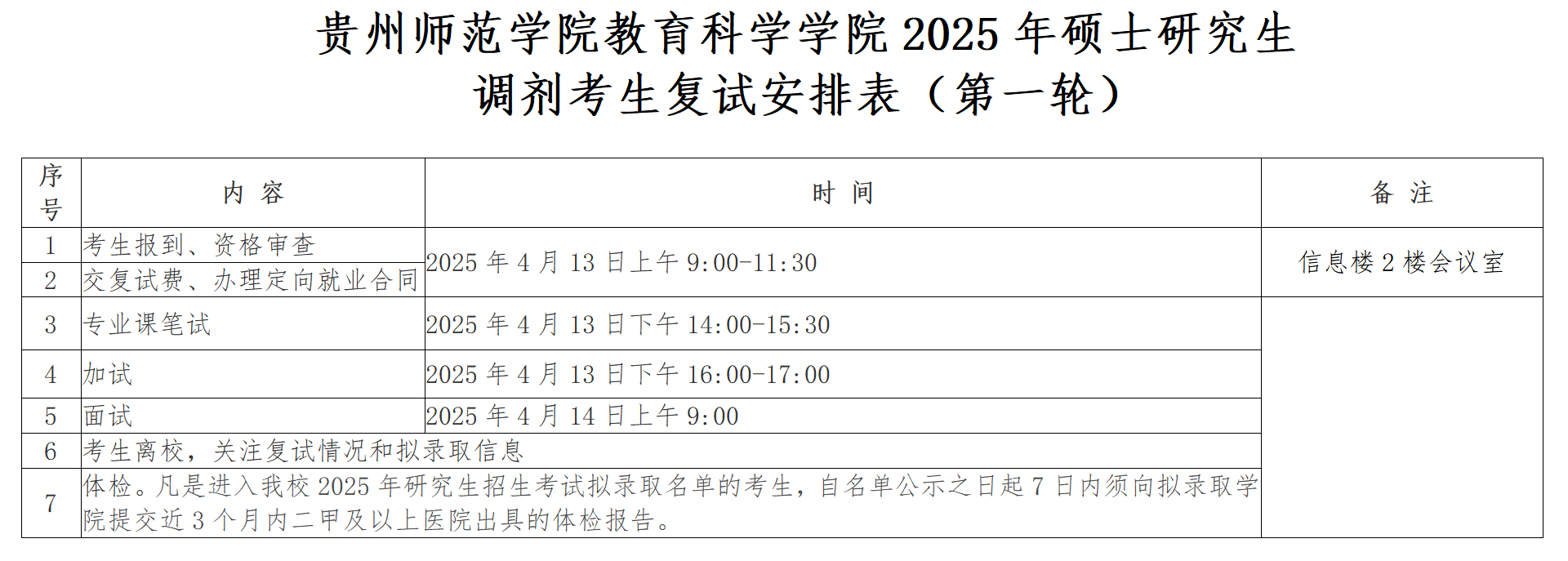 根据《贵州师范学院2025年硕士研究生复试录取工作办法》《贵州师范学院2025年硕士研究生招生调剂工作办法》等文件精神,为做好教育科学学院2025年硕士研究生招生调剂工作,现将我院调剂专业、调剂程序等信息公告如下: