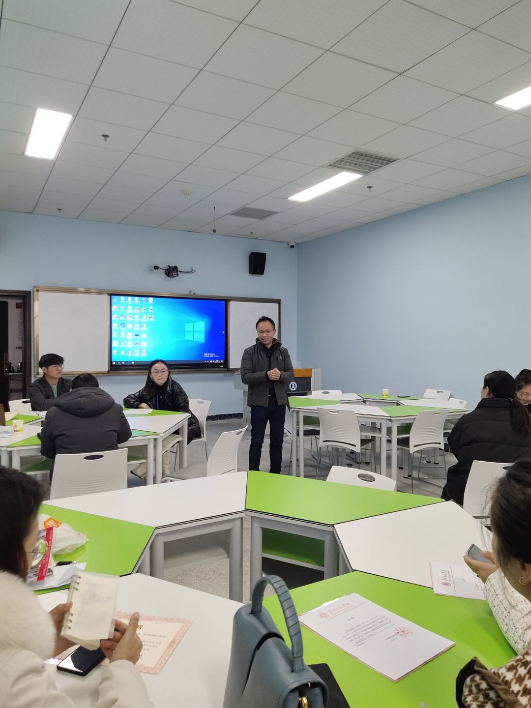 此次培训共有来自贵州省高中心理健康老师199人,他们都是来自各个地州高中的心理骨干教师,因为疫情防控规定,此次培训分为两期,每期100人左右,每期分为两个班,每个班50人。