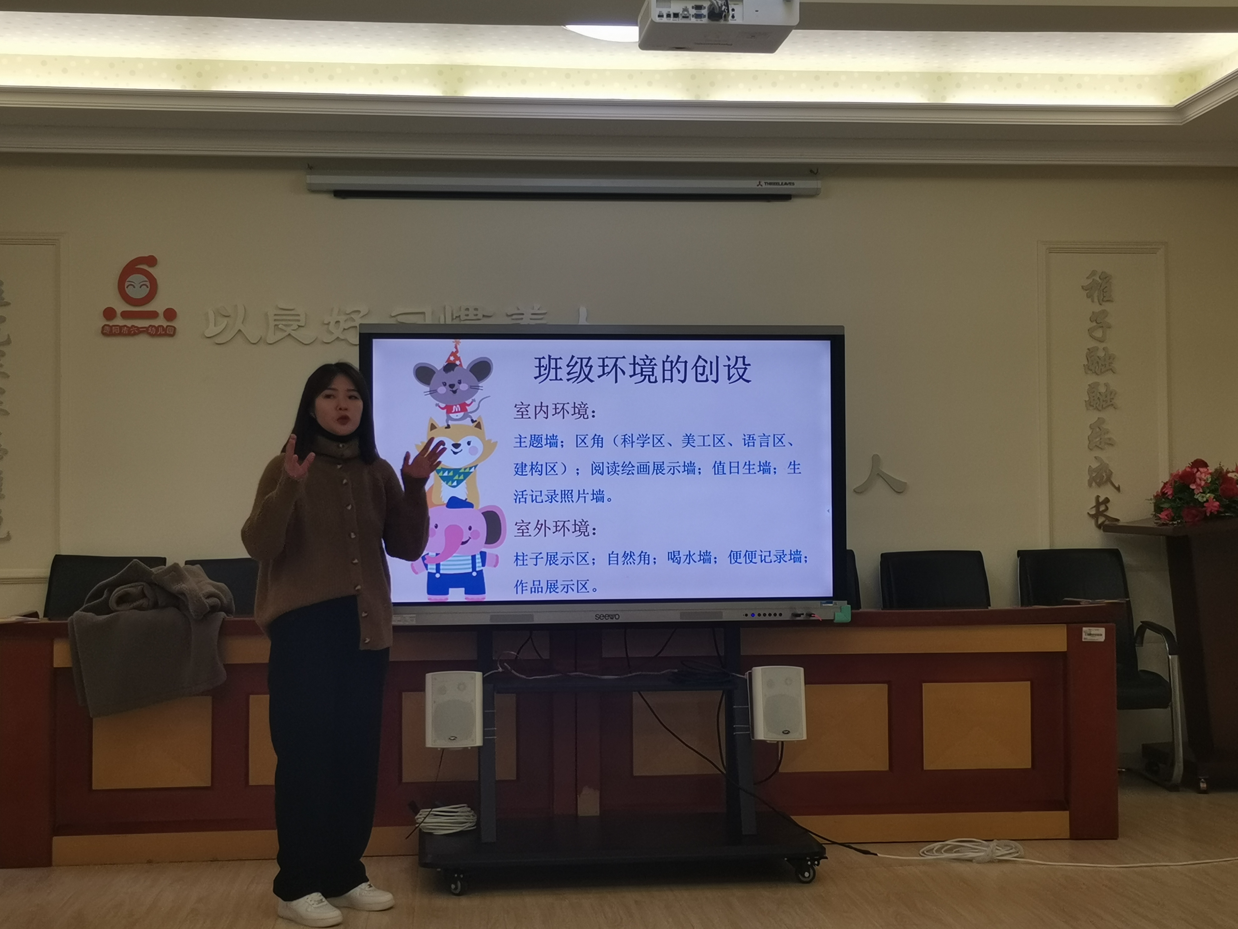 图2 翁雯老师讲解班级环创