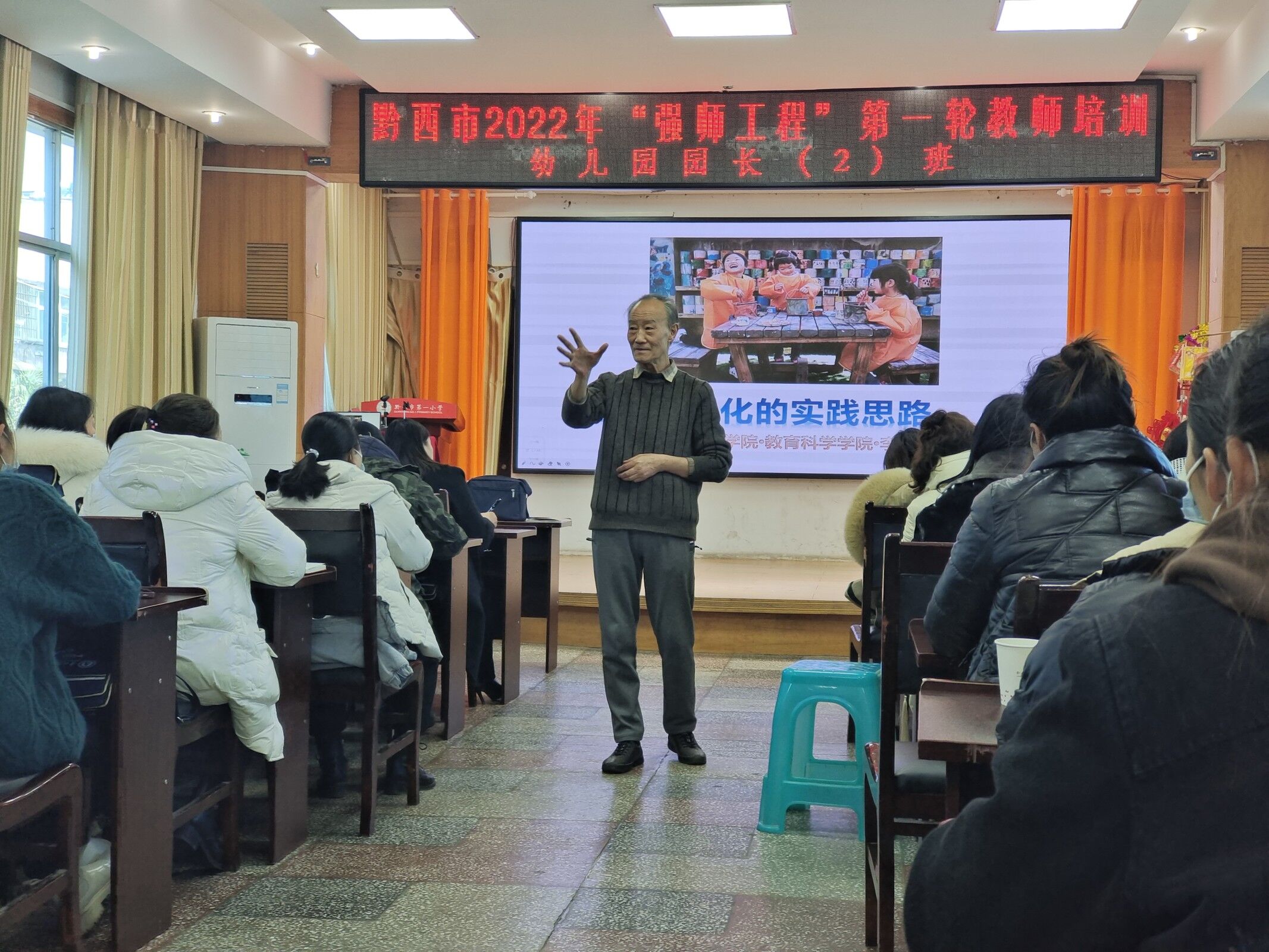 1月18日教育科学学院李建年、郑玉莲、刘英、王雯颖、冯静及李琴六位教师应黔西市教育科技局邀请赴该市开展“强师工程”幼儿园园长能力提升培训讲座。
