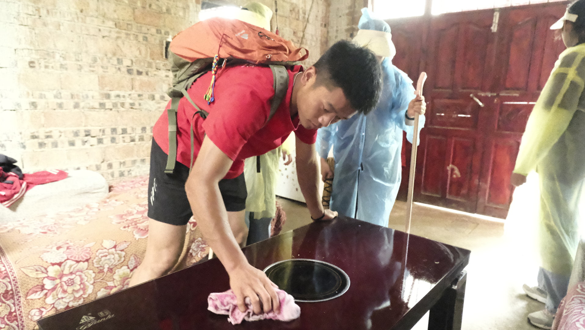 志愿者为村民打扫卫生