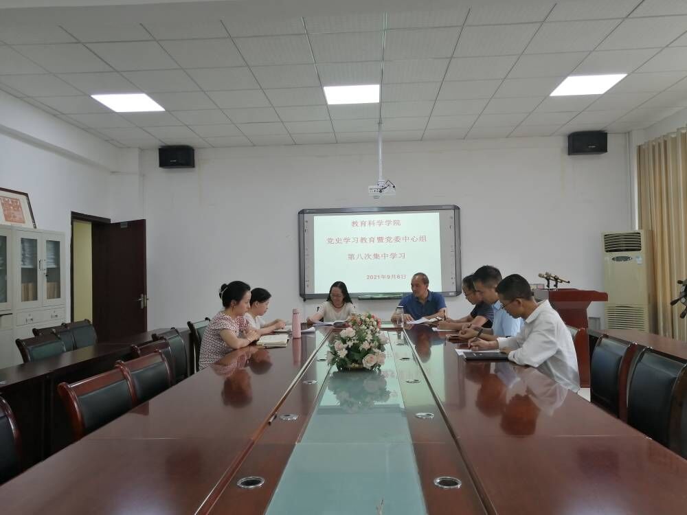 2021年9月6日下午2:30,教育科学学院党史学习教育暨第八次党委中心组集中学习在学院会议室举行,学习主题是:深入学习习近平总书记在庆祝中国共产党成立一百周年大会上的重要讲话精神,推进学院十四五发展规划起好步开新局,学习以研讨形式开展,党委中心组成员分别发言交流。学院党委书记彭祥友主持,党委中心组成员参会,各党支部书记列席。