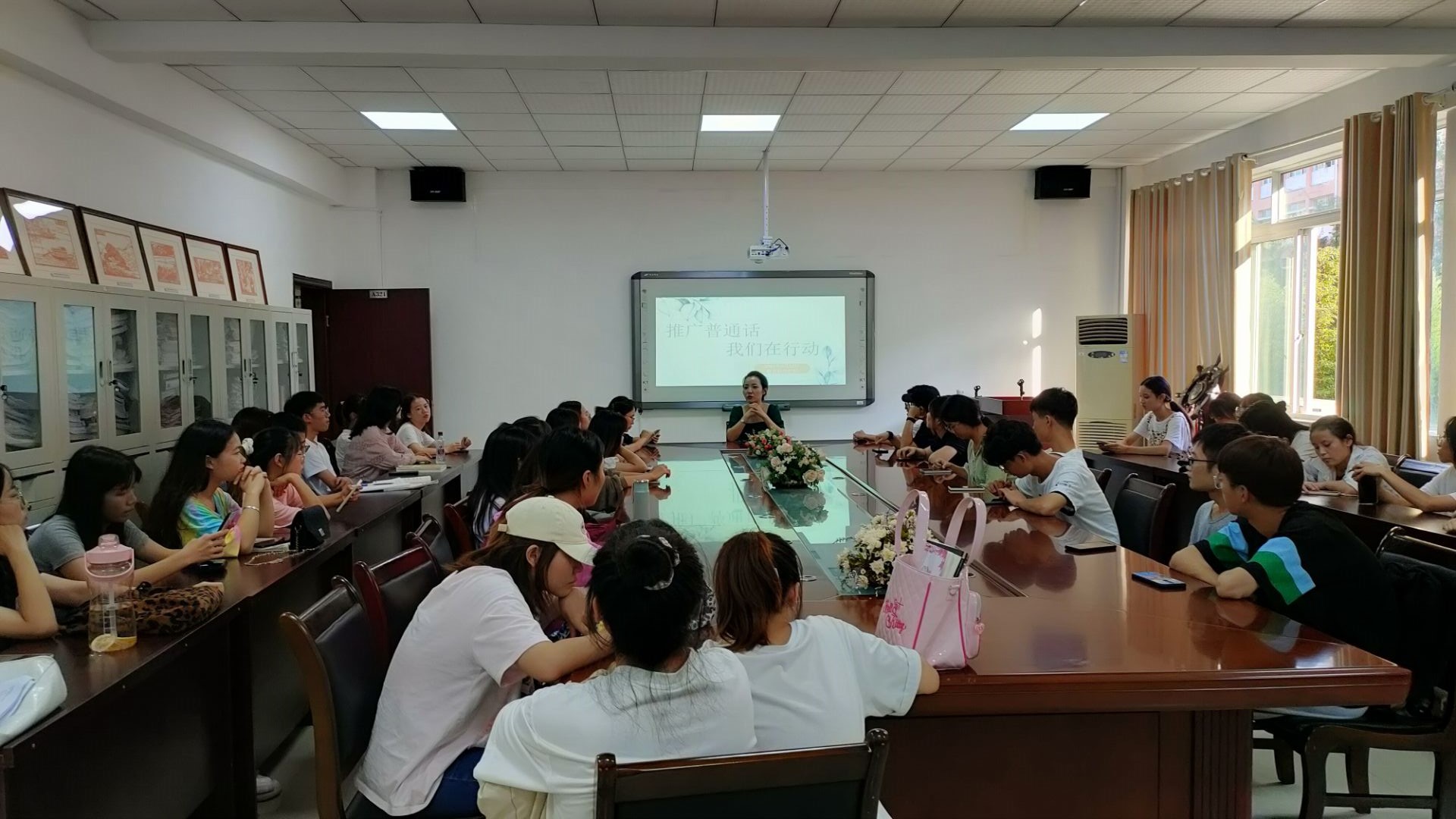 9月22日,教育科学学院学生代表在三楼会议室开展了“推广普通话 我们在行动”的活动,活动由学院团委书记张源主持。