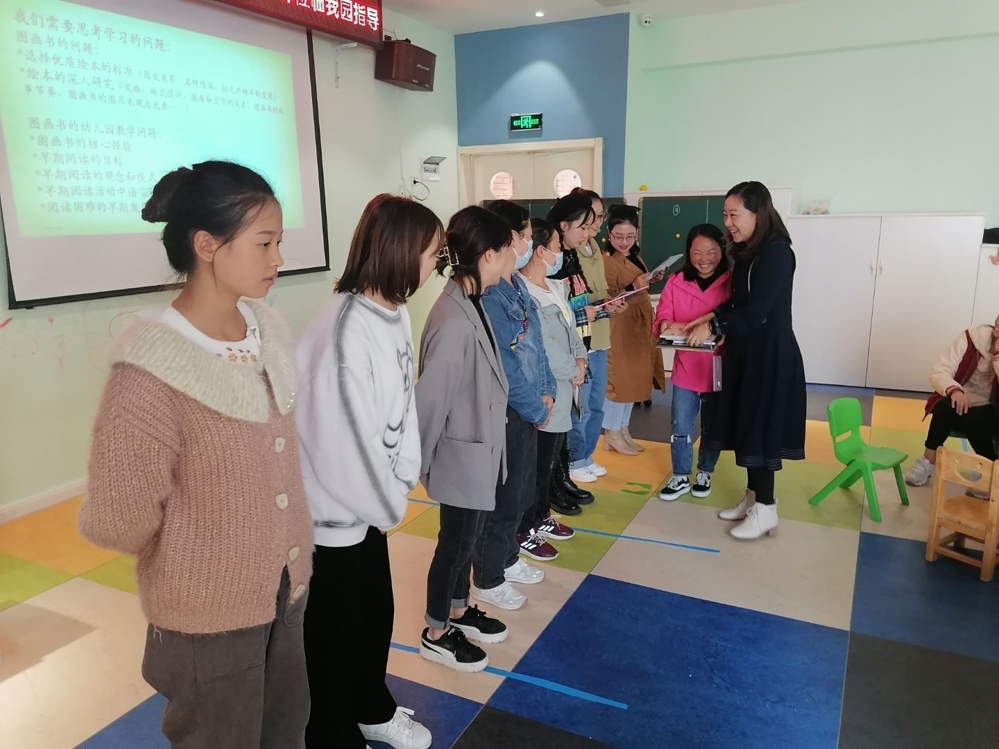 2021年10月12日中午一点半,贵州royal皇家88平台学前教育罗婷老师带领其“学前儿童语言教育”课程项目学习小组的八名学生来到乌当区高新幼儿园组织开展教研活动。本次教研活动由幼儿园大教研组长李婷老师主持,参与教研活动的有幼儿园全体教师共计19人,还有各班家长代表共计18人。