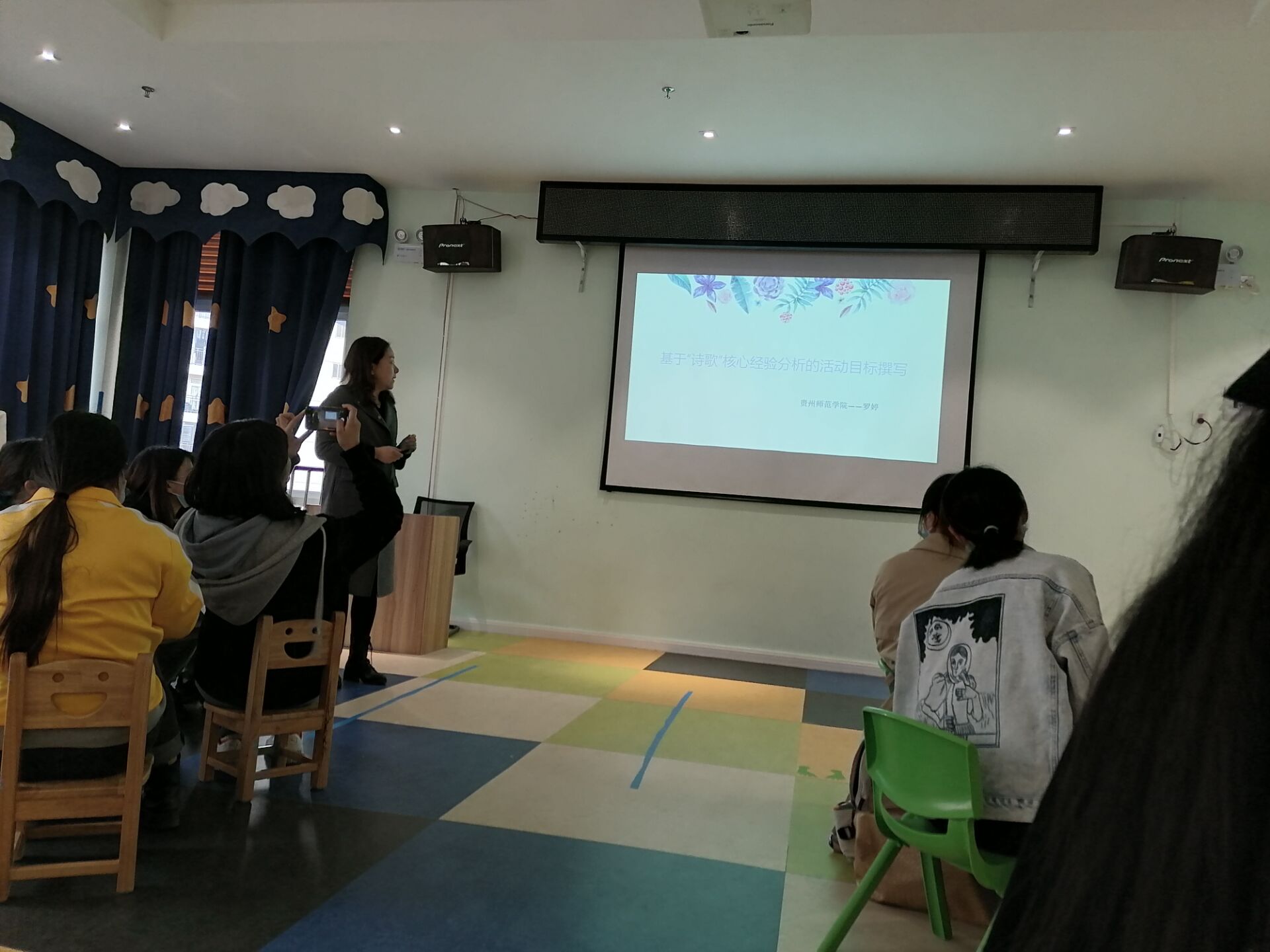 2021年4月16日中午一点,贵州royal皇家88平台学前教育罗婷老师带领其导师制的2018级与2019级学前教育专业共计八名学生来到乌当区高新幼儿园组织开展“探究式”教研活动。本次教研活动,在真实幼儿园情境中,结合幼儿园教师教学中的难点,尝试采用“专题讲座”结合“团体探究”的新形式。