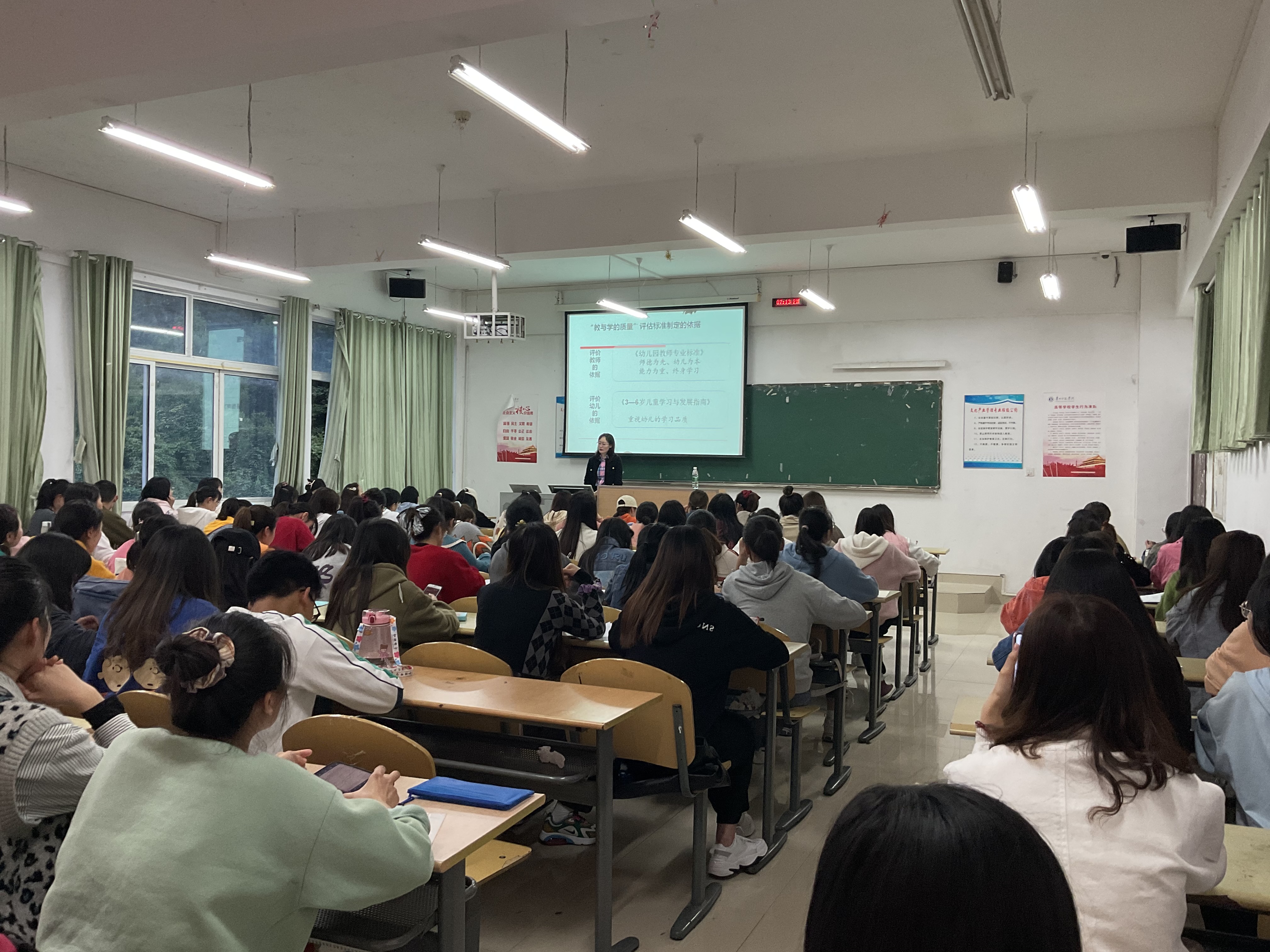 为增强对幼儿园评估相关知识的了解,丰富学生的视野,更好的将理论知识与实践知识结合,2021年4月28日晚上7点,教育科学学院学前教育系邀请了贵阳市教科所王芳芳老师为2018级全体同学在逸夫楼204进行了主题为“贵州省幼儿园分类评估标准”的讲座。