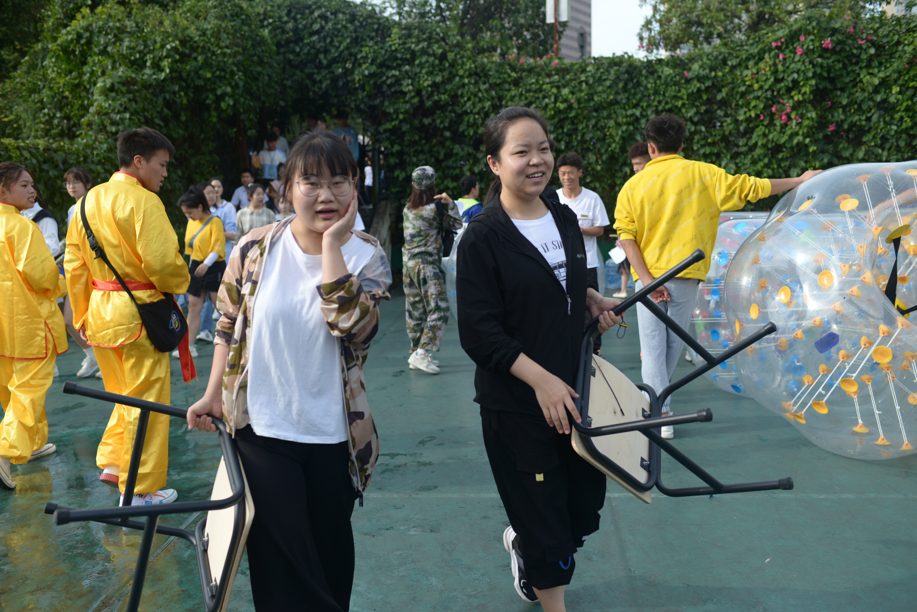 为确保为期三天的校运动会更安全、更有序,运动会志愿者们工作有条不紊地进行着:搬运桌椅帐篷、清扫赛场垃圾、带领运动员到达比赛地点等。负责各项任务的志愿者之间配合默契,发扬着志愿精神,服务广大师生。