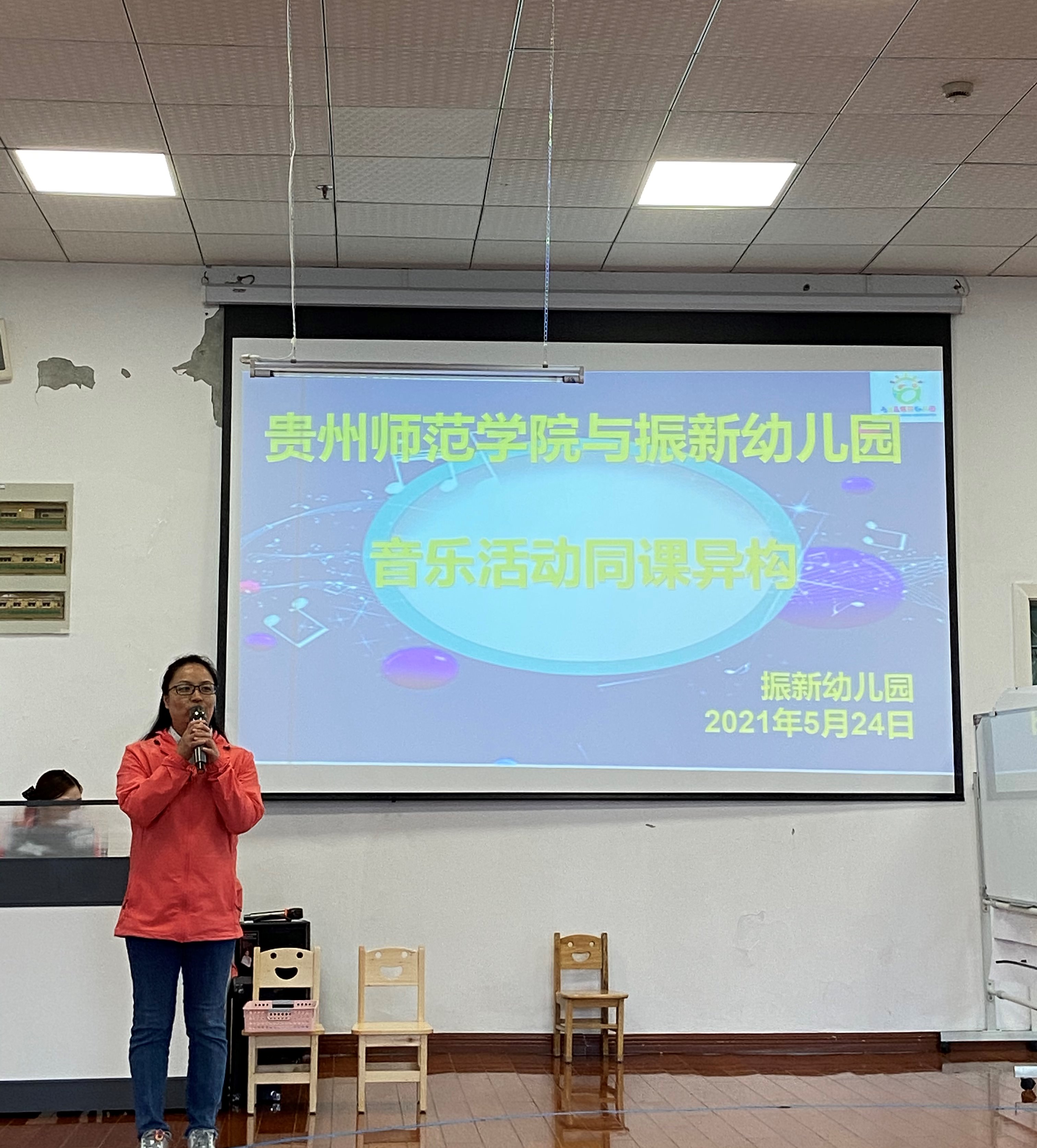 2021年5月24日上午,教育科学学院郑玉莲博士和冯静老师带领20名学前教育专业学生参加了乌当区振新幼儿园市级同课异构教研交流活动,本次活动由教育科学学院与乌当区振新幼儿园共同承办,参加本次研讨的还有振新幼儿园教研责任区100多名教师和乌当区教培中心马主任和教研员宋老师。