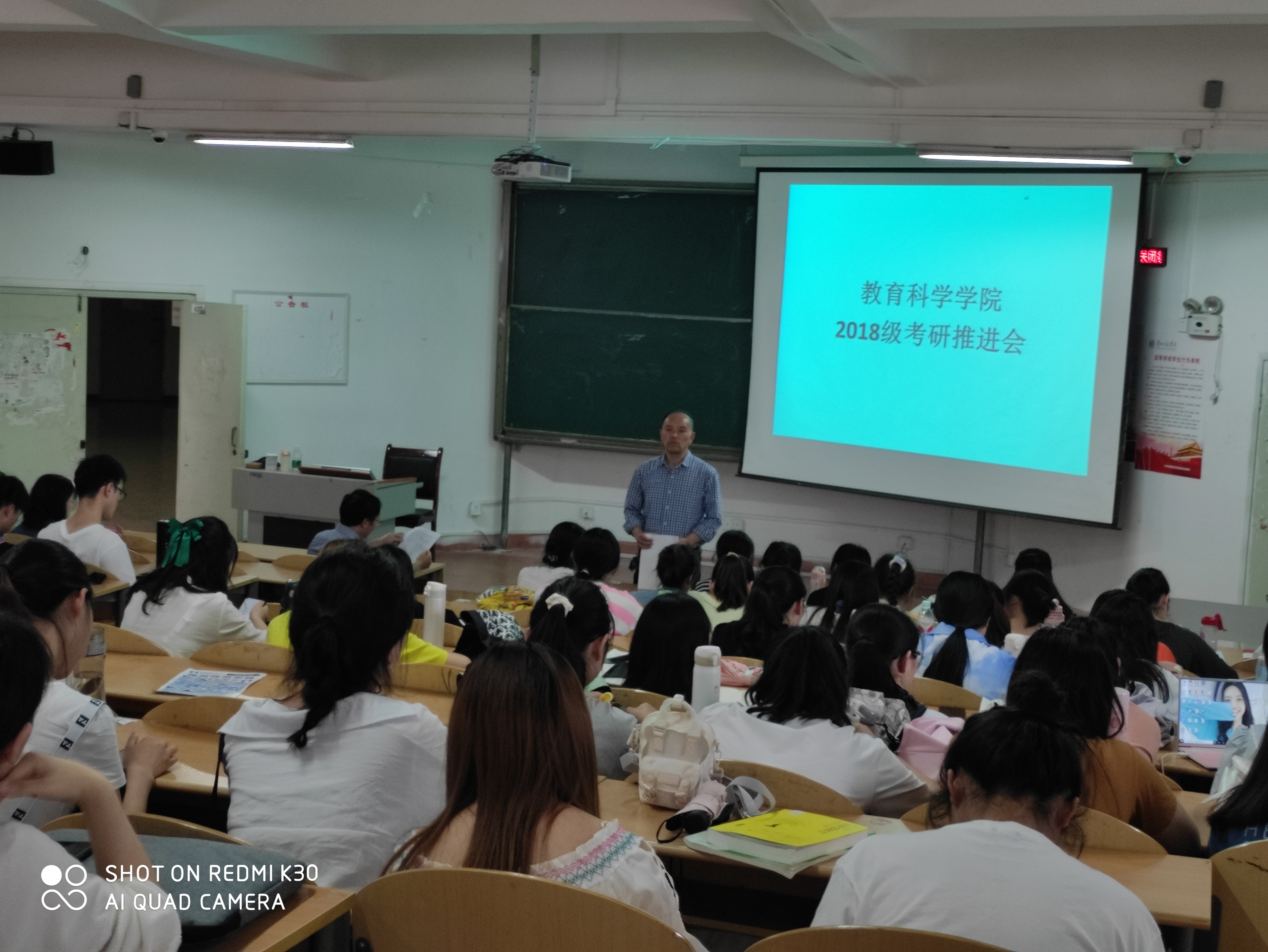 2021年6月8日下午,教育科学学院在宁静楼437教室召开教育科学学院2018级考研推进会,党委书记彭祥友、副院长黎平辉、助研班主任邓秀平、唐辉一老师以及2018级全体考研学生参与了本次推进会。