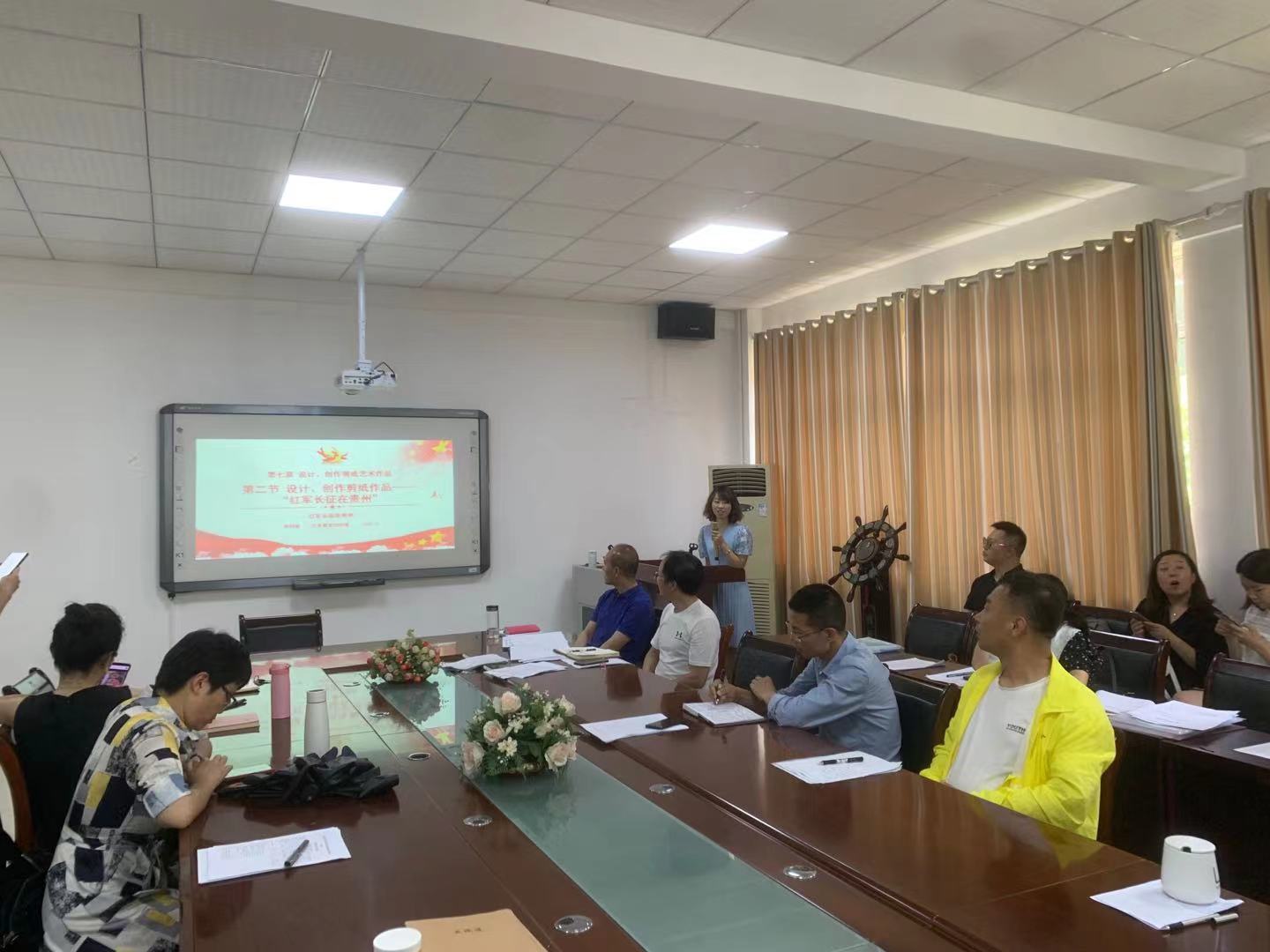 最后,申利丽老师对其“红军长征在贵州”的剪纸创作课程进行了分享。在课程的实施过程中,申利丽老师结合长征史实,带领同学们进行剪纸画的创作,一方面训练了学生剪纸创作的操作能力,另一方面将思政元素较好的融合到学习过程中,在培养学生专业技能的同时升华了学生的情感体验。