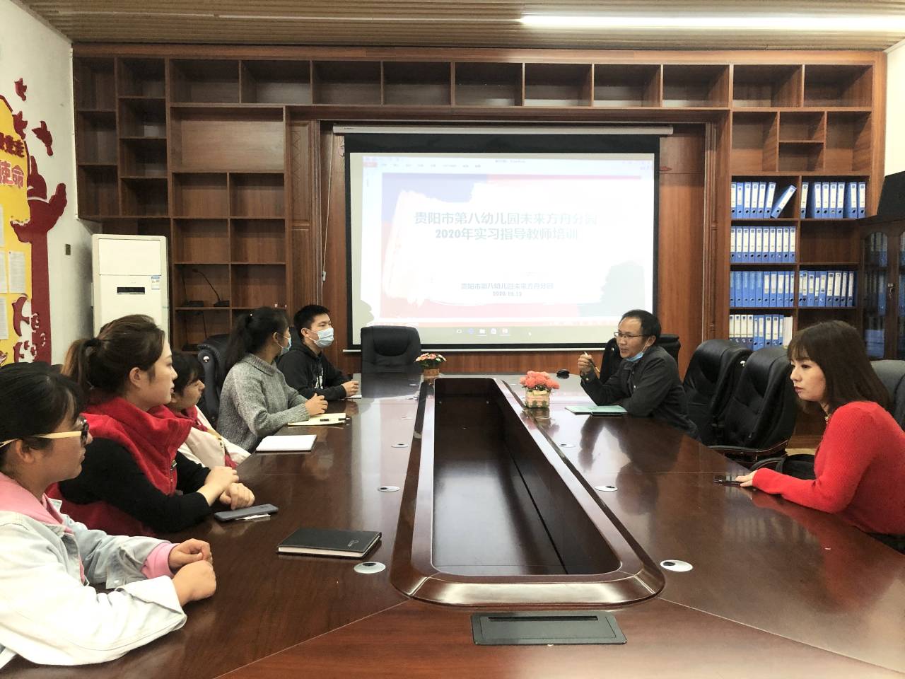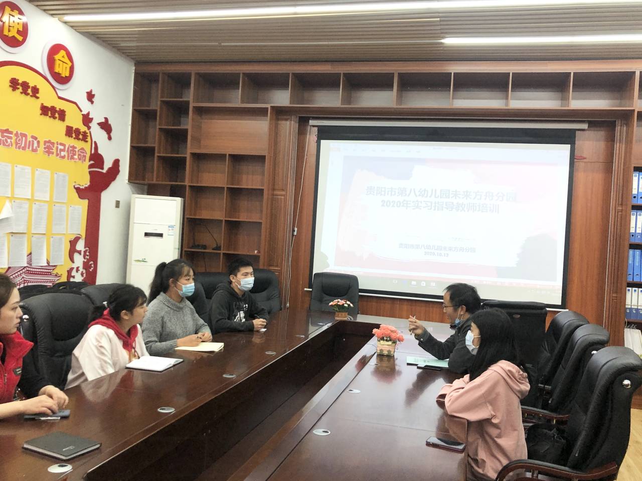 为深入了解实习生的工作情况和思想动态,教育科学学院副院长黎平辉、学前教育专业教师陈泽婧和主懿芹、科研助理吴桂桃于2020年10月12日到贵阳市第八幼儿园未来方舟分园看望实习学生,并出席贵阳市第八幼儿园未来方舟分园的实习单位指导教师培训。