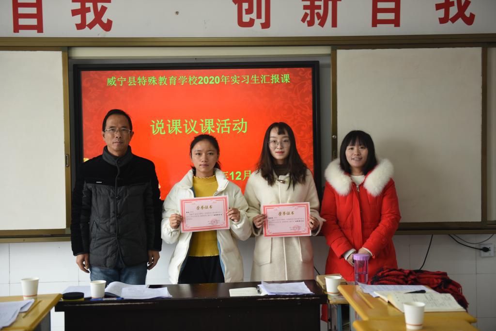 2020年12月25日,贵州royal皇家88平台特殊教育系杨娟老师赴威宁彝族回族苗族自治县特殊教育学校参加2020年实习生汇报课及说课议课活动。威宁特殊教育学校副校长李育学,教务主任吕伟,培智部负责人黄朝丽,培智语文教研组长徐俊,实习指导老师顾艳情、王菊芳及部分学科教师参加了此次活动。