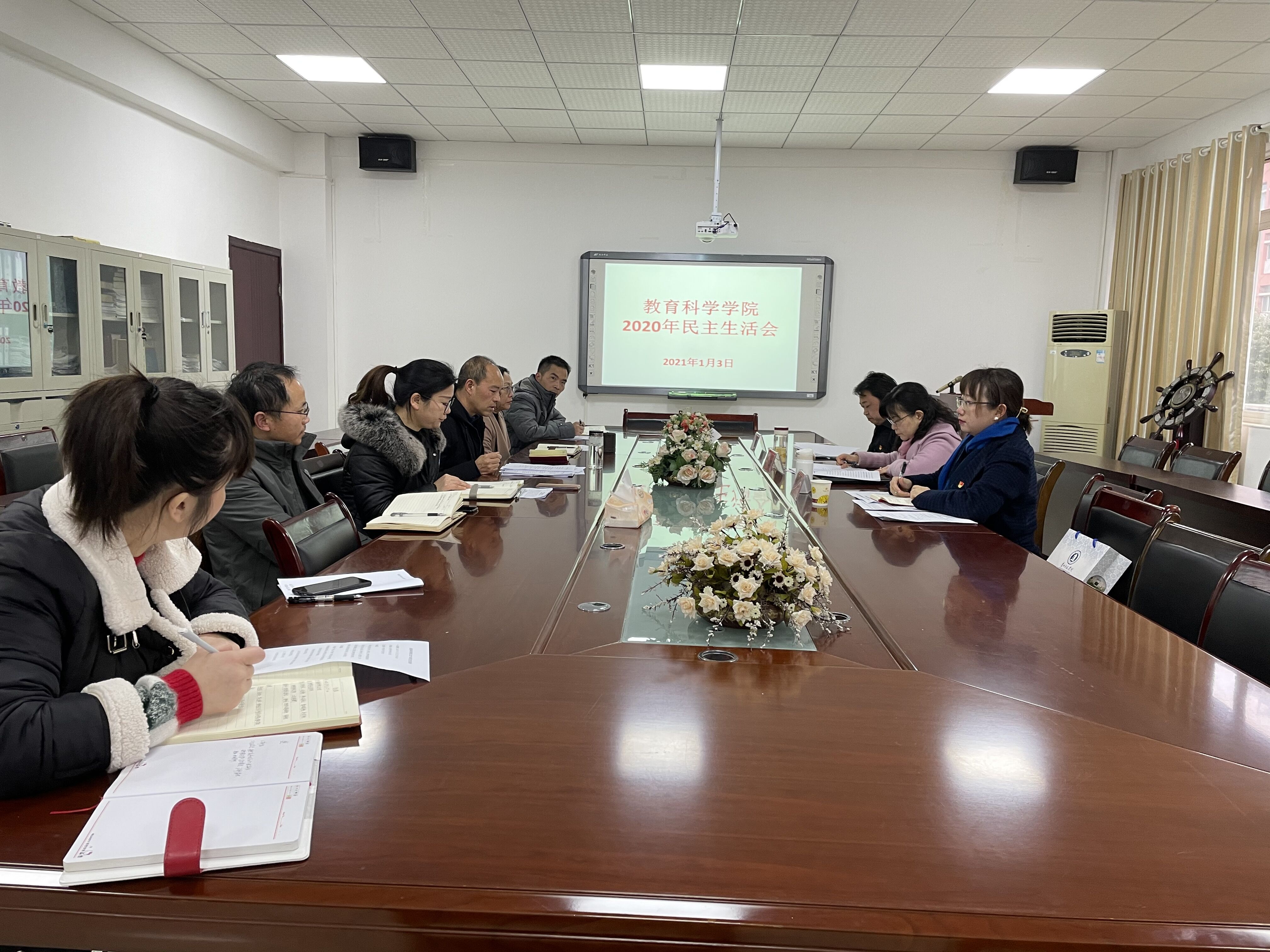 202113日上午,教育科学学院2020年民主生活会在逸夫楼学院会议室召开,学校党委副书记郭文、党委宣传部副部长冯建国、理论思政科科长周煜到会指导,教育科学学院党委书记彭祥友、院长兼党委副书记刘红、党委副书记傅小芳、副院长黎平辉、副院长袁川、教师党支部书记李琴、教师代表学院工会主席主懿芹参加会议,会议由彭祥友主持。