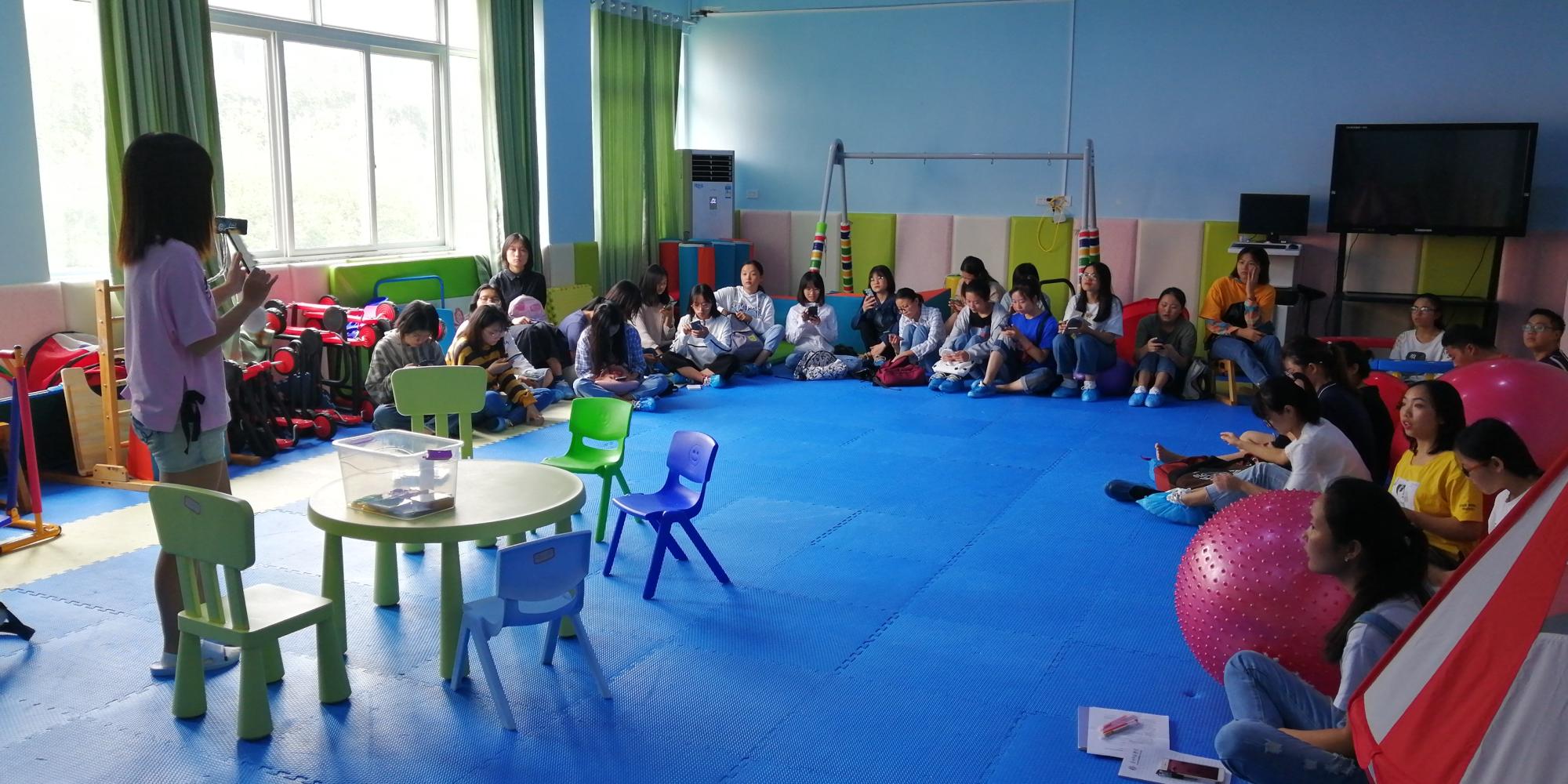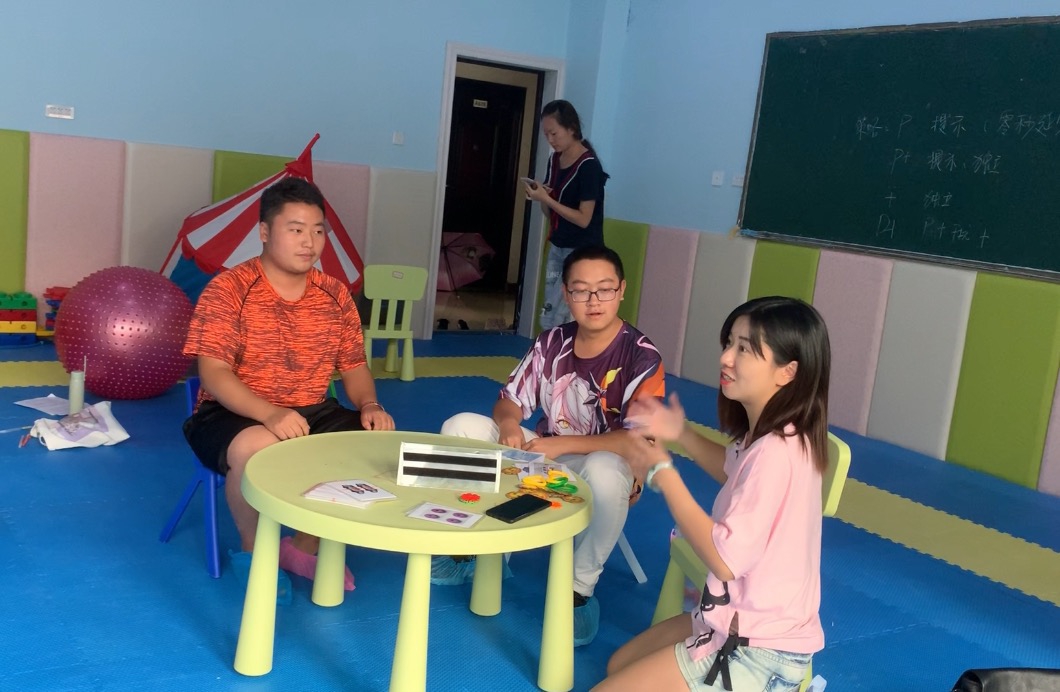 培训内容主要围绕:策略介绍、提示系统的运用、初阶课程讲解与现场演示、成员现场操作四个板块。由于新进成员之前大多没有实操经验,对于培训的内容提前进行了预习,并在培训中踊跃发言讨论。自闭症儿童的教学与普通儿童存在差异,朱老师根据自己的临床经验向大家讲解,如何在个训课中合理的使用策略和提示系统以辅助课程的顺利进行。并选择8项初阶课程作为范例,一一演示、操作给大家观看,随后31位成员两两一组,针对新学的课程进行现场实践操作的演练。