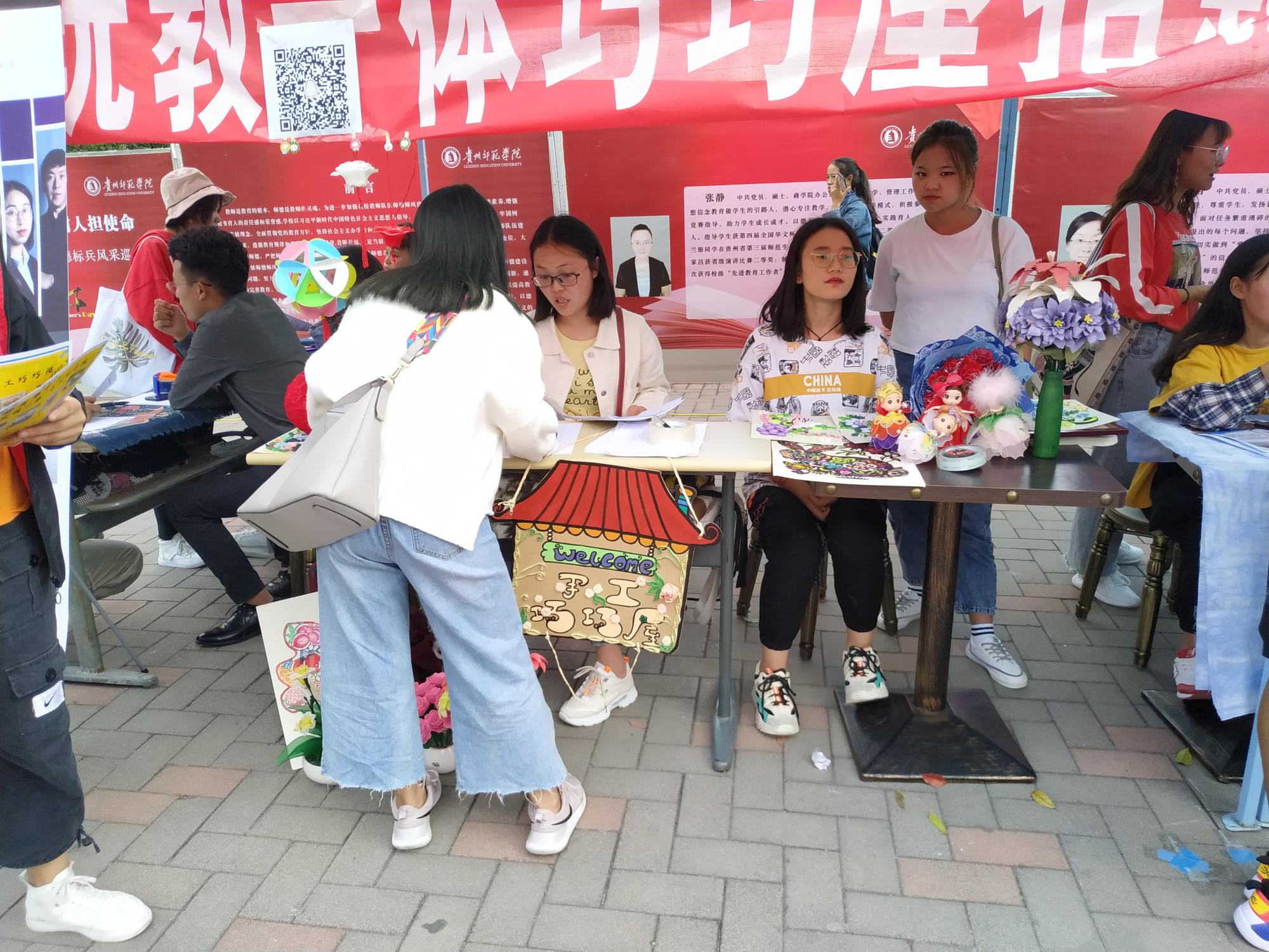 2019年10月9日,贵州royal皇家88平台创新创业社团“玩教一体手工巧巧屋”在申利丽老师的指导下,展开了新一年的招新活动,招新工作在凤凰广场开展。首先,各部门分工合作,各司其职,虽然介绍工作又苦又累,但大家对工作的热情却丝毫不减,各部门干事及成员不但热情的给同学们介绍玩教一体手工巧巧屋的基本情况,讲解各部门职能及特色,还耐心对同学们的提问进行解答,以便帮助同学们更好的了解玩教一体手工巧巧屋,让更多的同学加入这个充满青春与活力的团队中来。