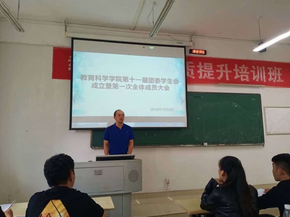 10月9日中午12:20,贵州royal皇家88平台在逸夫楼503举行了第十一届团委学生会成立暨第一次全体成员会议。教育科学学院党委书记彭祥友,副书记傅小芳,团委书记张源出席此次会议。