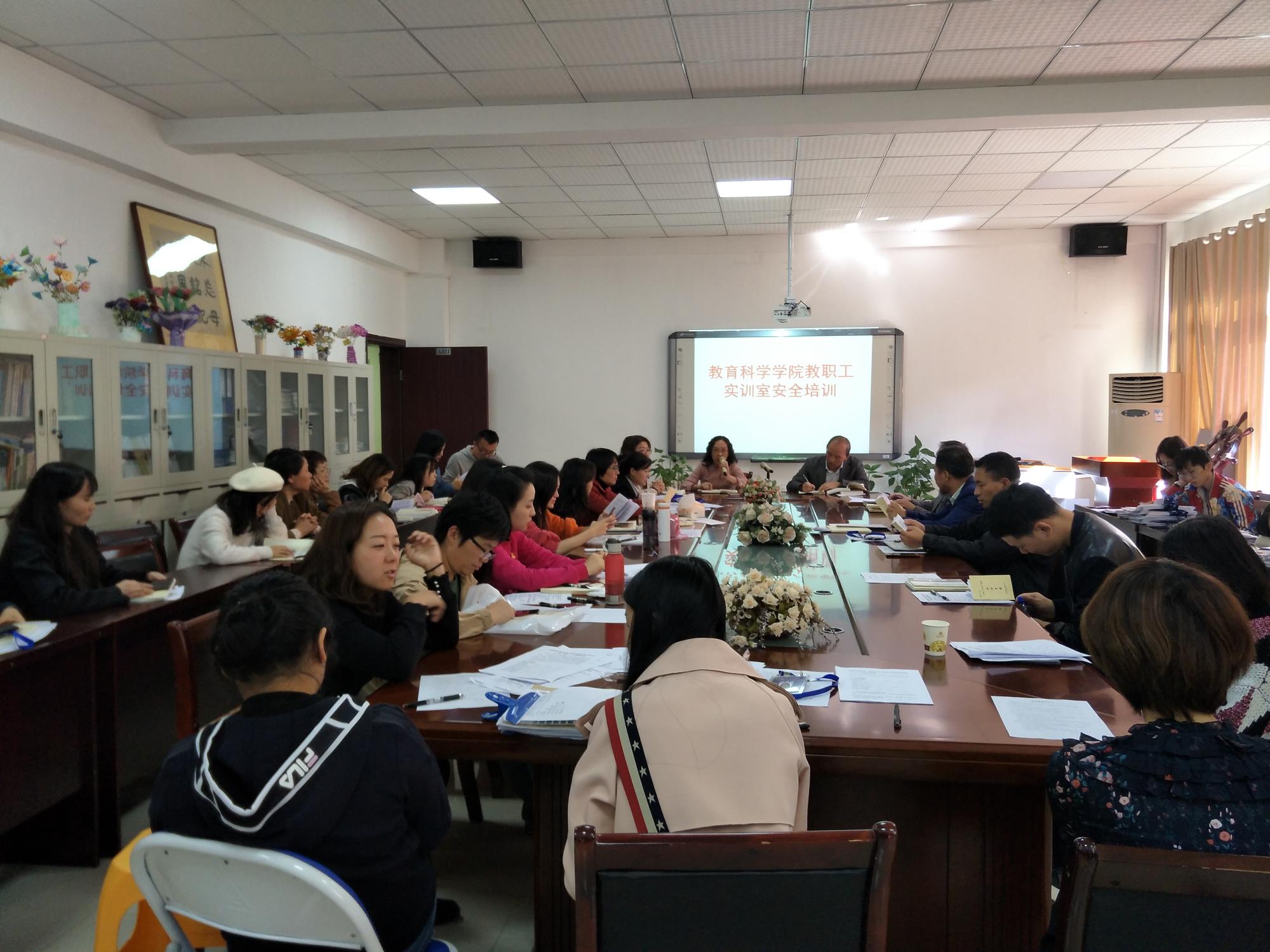为深入贯彻落实十九大精神,构建平安校园,进一步加强我院实训室安全管理,提升我院实训室安全管理水平,2019年10月18日下午,我院在逸夫楼A313会议室举办实训室安全教育培训活动。培训由教育科学学院院长刘红主持并主讲,学院党委书记彭祥友以及全院教职工参加了此次培训。