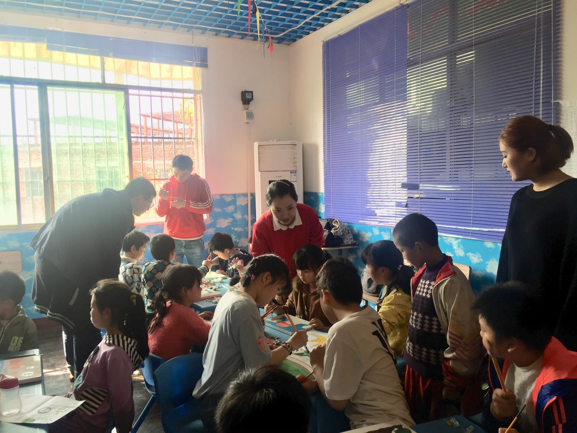 看着孩子们那一张张天真可爱的笑脸,团队成员们也非常欣慰,若今后有机会还将走进乡村学校来看望这些可爱的孩子们,与他们共同绘画,为孩子们的健康成长献一份力!
