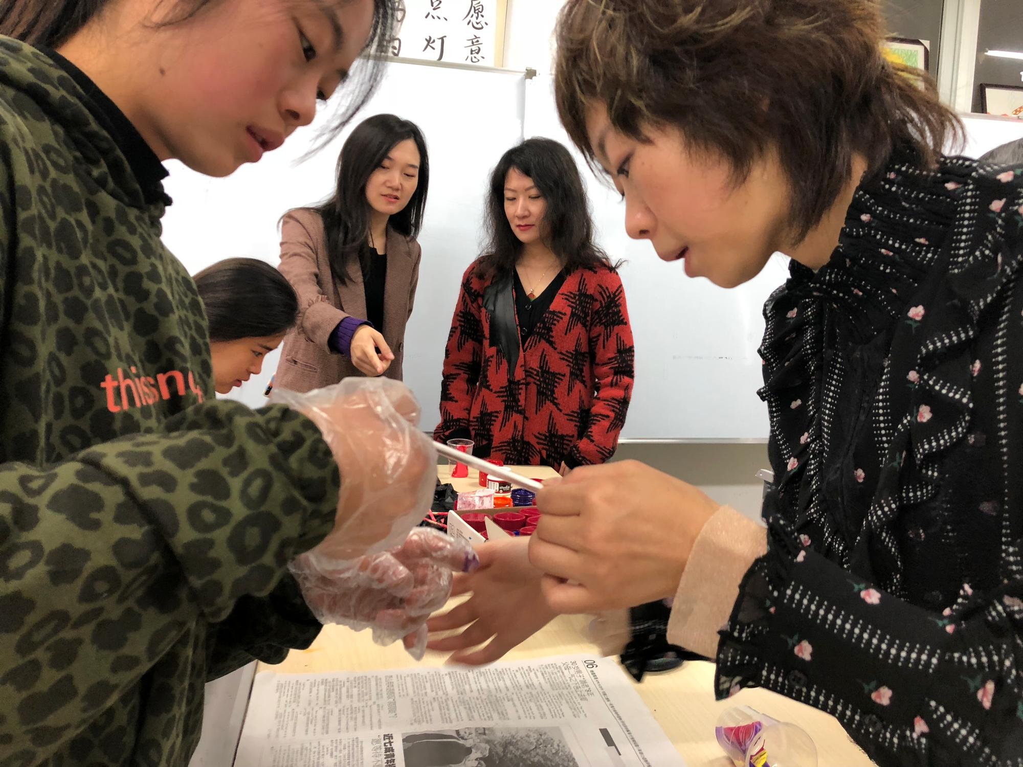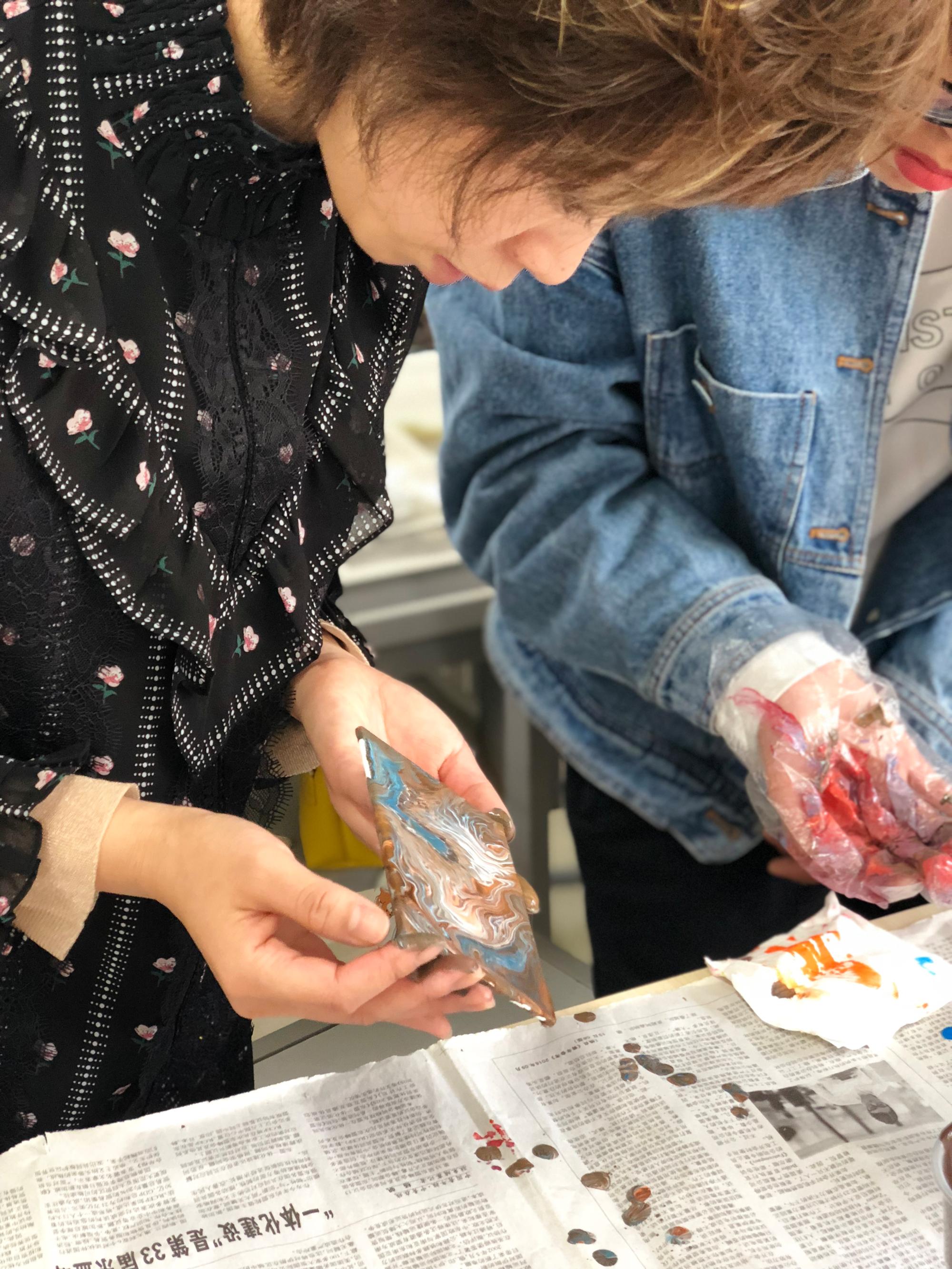5月9日上午,在系主任马慧慧老师的带领下,教师们对参加比赛的申利丽老师进行了听课,并进行了评课等活动。申利丽老师授课班级为学前教育专业2018级(1)班,授课内容为《创意美术——流体画“年轮”》,申老师首先利用多媒体、教师作品展示、工具材料展示进行了基础知识讲解,其次申老师进行实际操作师范,让学生从工具、材料、媒介、色彩搭配、技法、技巧等方面进行了学习,最后学生进行实际操作对知识、技法、技巧进行巩固,因为是实操性、创意类课程,所以课堂上更注重学生“创意作品”的制作过程和成果,每位同学的“创意”都不同,申老师对每位同学都进行了细心指导。