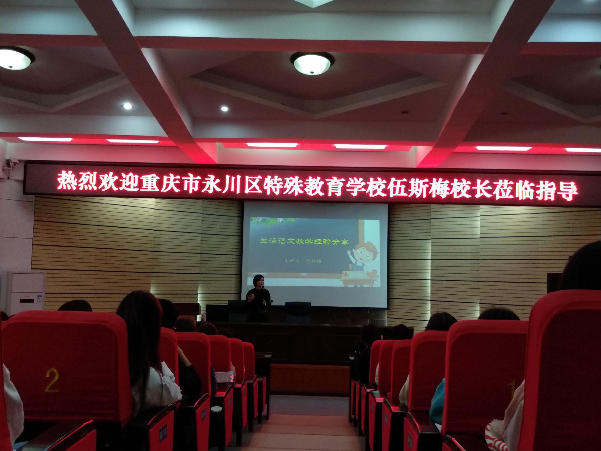2019年5月10日上午,重庆市永川区特殊教育学校伍斯梅副校长到我校宁静楼150报告厅进行生活语文教学方法专题讲座。教育科学学院16级、18级特殊教育专业全体同学参加,此次分享会由特殊教育系主任杨娟主持。