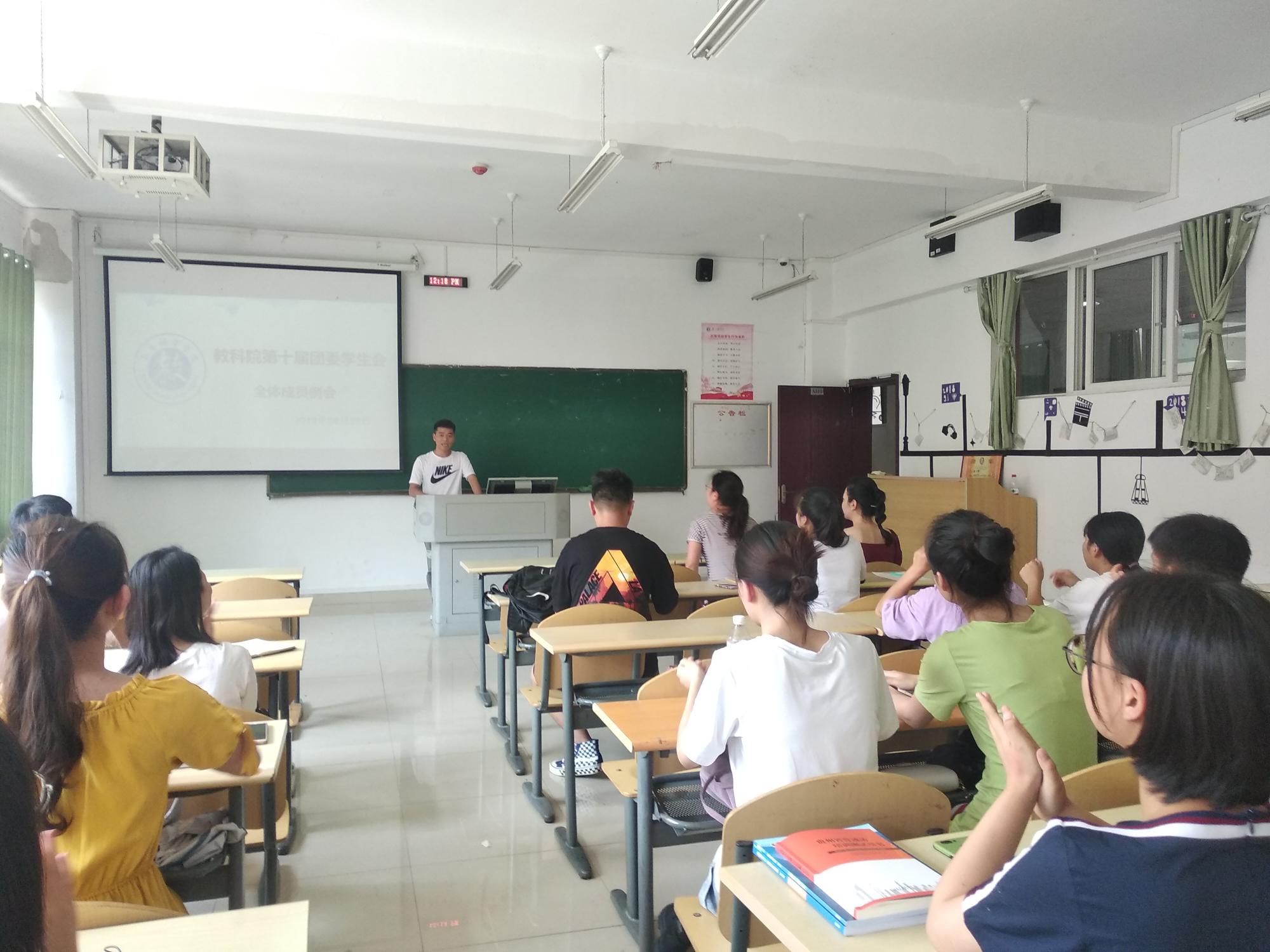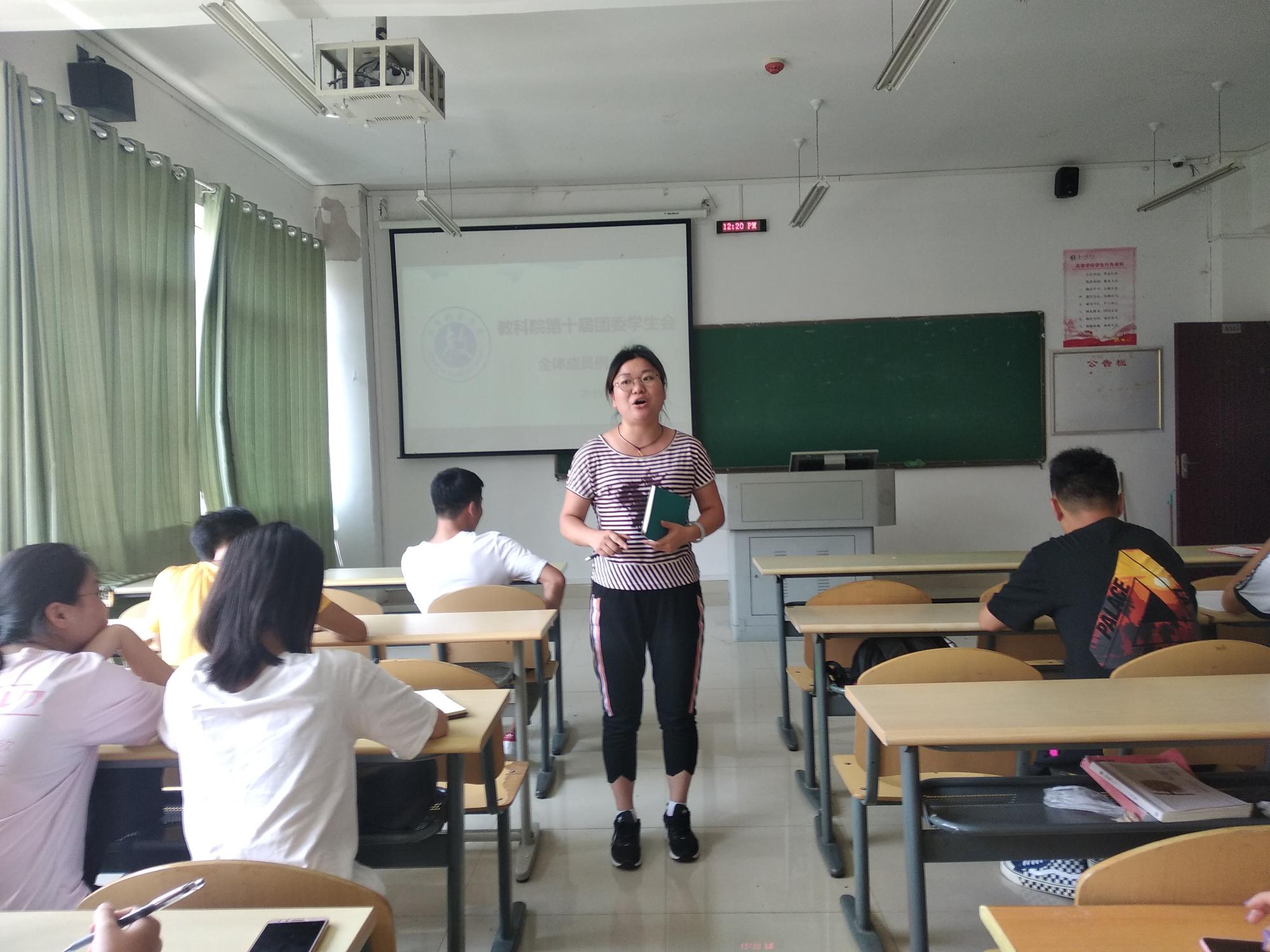 新学期新气象,2019年8月20号,教育科学学院第十届团委学生会于逸夫楼515教室开第一次例会。出席会议人员有教育科学学院党委副书记傅小芳、团委书记张源及团委学生会全体成员,会议由张和明主持。