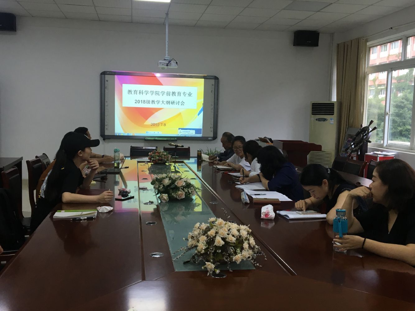 7月8日下午,教育科学学院学前教育专业在教科院会议室召开2018级教学大纲研讨会。本次研讨会由全体学前教育专业的教师参加,并特邀贵州师范学院马克思主义学院王天桥副教授从课程思政的角度对教学大纲进行指导评析。