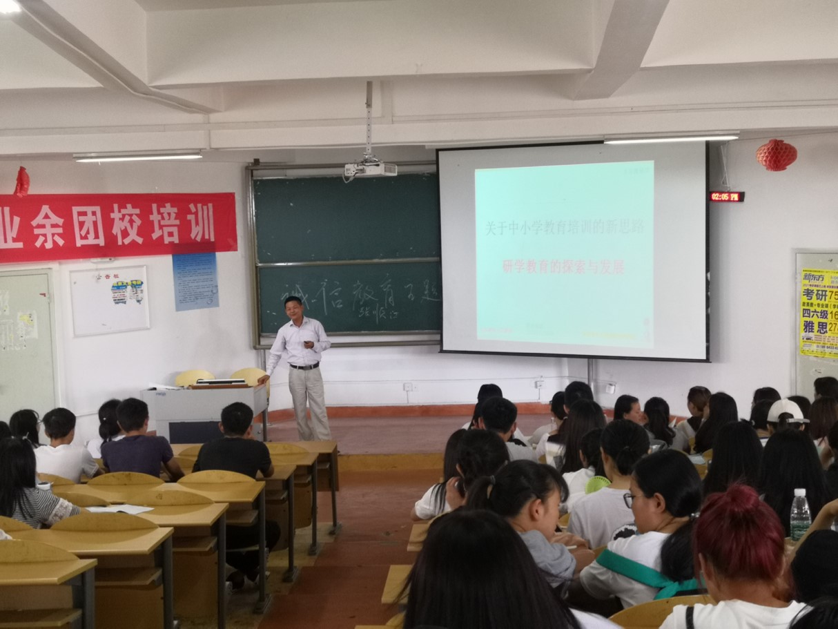 张顺江主要介绍了目前在中小学开展教育培训的新思路——研学教育,将学校教育和校外教育进行很好的衔接与配合,让学生不在单纯的从书本上汲取知识,而是从自身的实践活动中吸取营养,张顺江还对目前开展研学教育的成果进行了精彩的分享,最后张老师强调了大学生树立目标的重要性,希望学生们通过大学的学习和成长,在今后的工作生活中不辜负老师、家长以及社会所给予的期望。