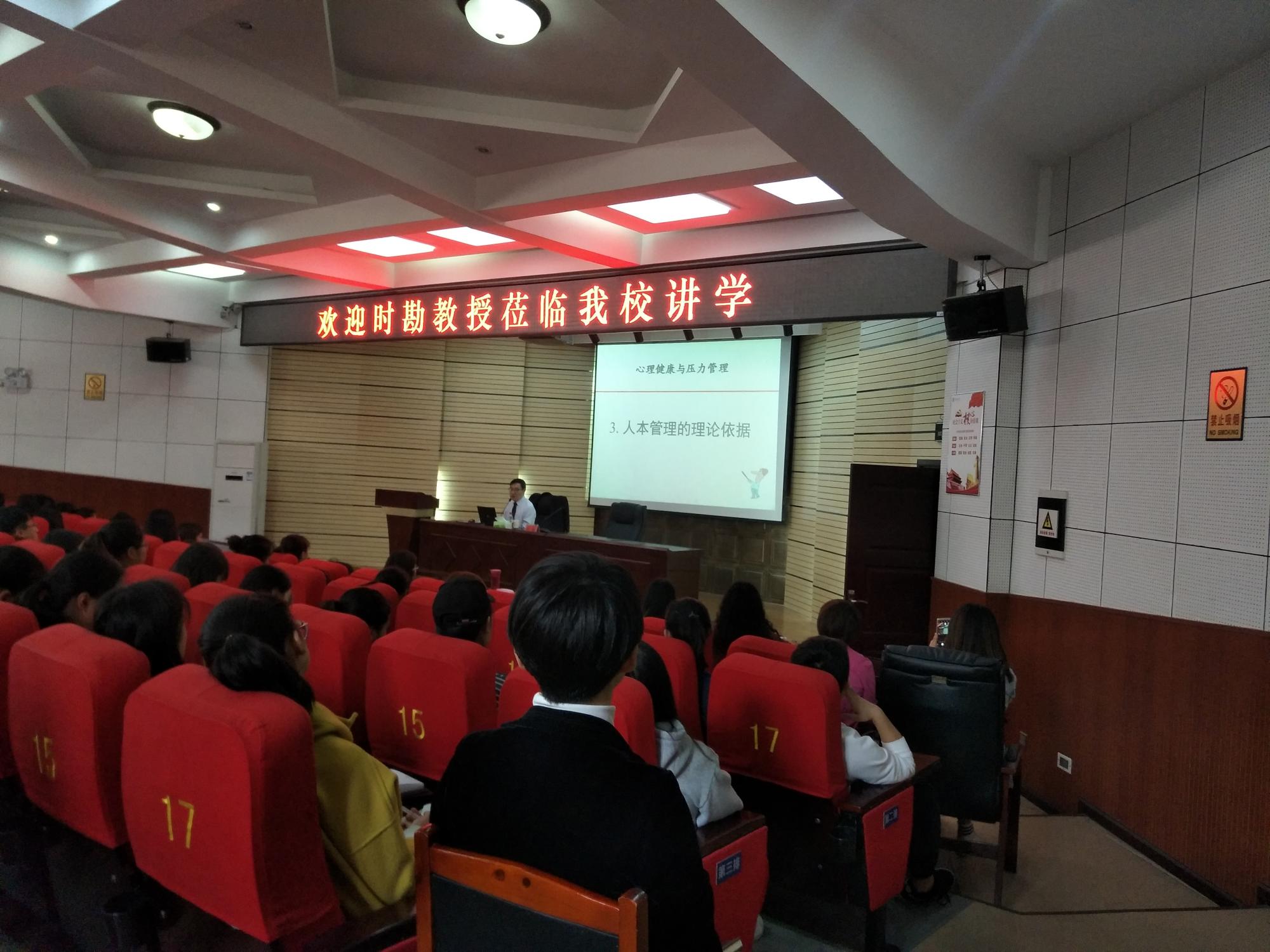 2019年3月29日下午15点,中科院博士生导师时勘教授在宁静楼150学术报告厅作“心理健康与压力管理”的讲座。本次讲座由教育科学学院院长刘红主持,教育科学学院基层工会组织,学院教师代表和学生代表参加了本次讲座。