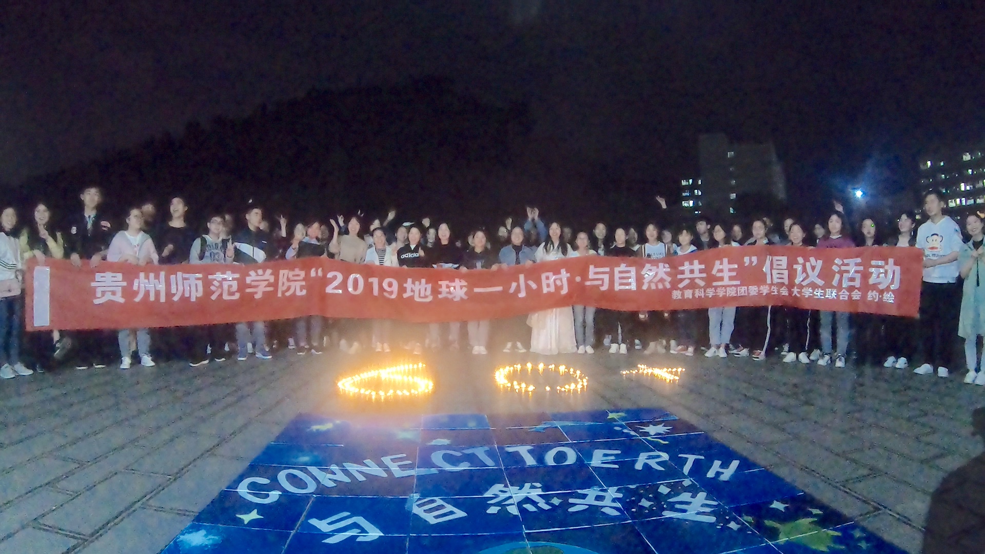 为倡议师院学子加强环保意识,对全球环保事业贡献微薄力量,由贵州royal皇家88平台团委学生会主办、贵州师范学院大学生联合会、约·绘摄氏度社团共同协办的“2019地球一小时 与自然共生”的主题活动于2019年3月22日在贵州师范学院鉴湖旁举行。