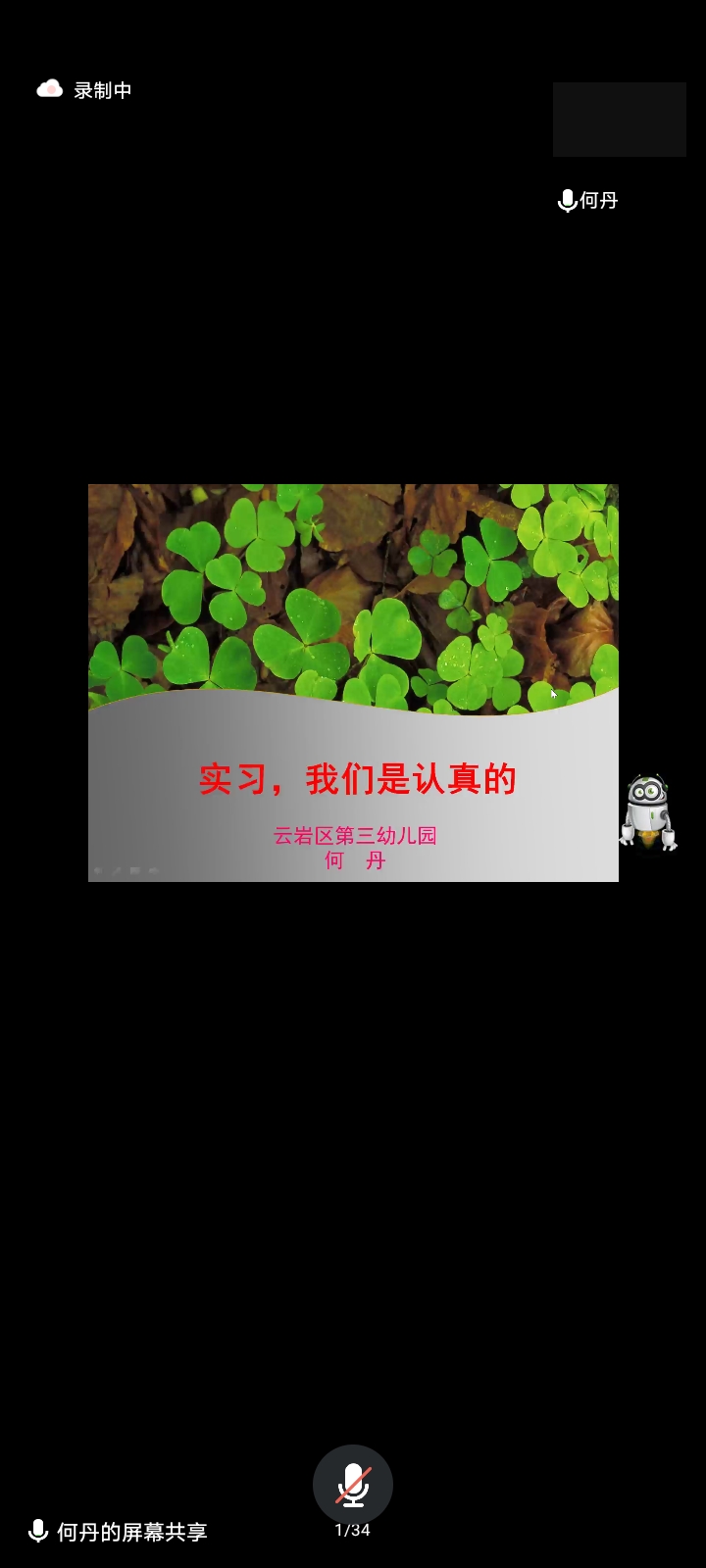 为进一步落实实习工作,提高学生实习技巧与班级管理的能力,有效地将书本知识运用于实践工作中,并完成步入社会的预备演练。6月13日,学前教育系开展了“幼儿园班级管理”的相关活动,此次活动通过腾讯会议平台开展,有幸邀请到云岩区第三幼儿园的园长何丹为我们展开活动,同时2019级学生共计109名学生参与其中,2019级学前教育一班学习委员欧志标主持此次活动。