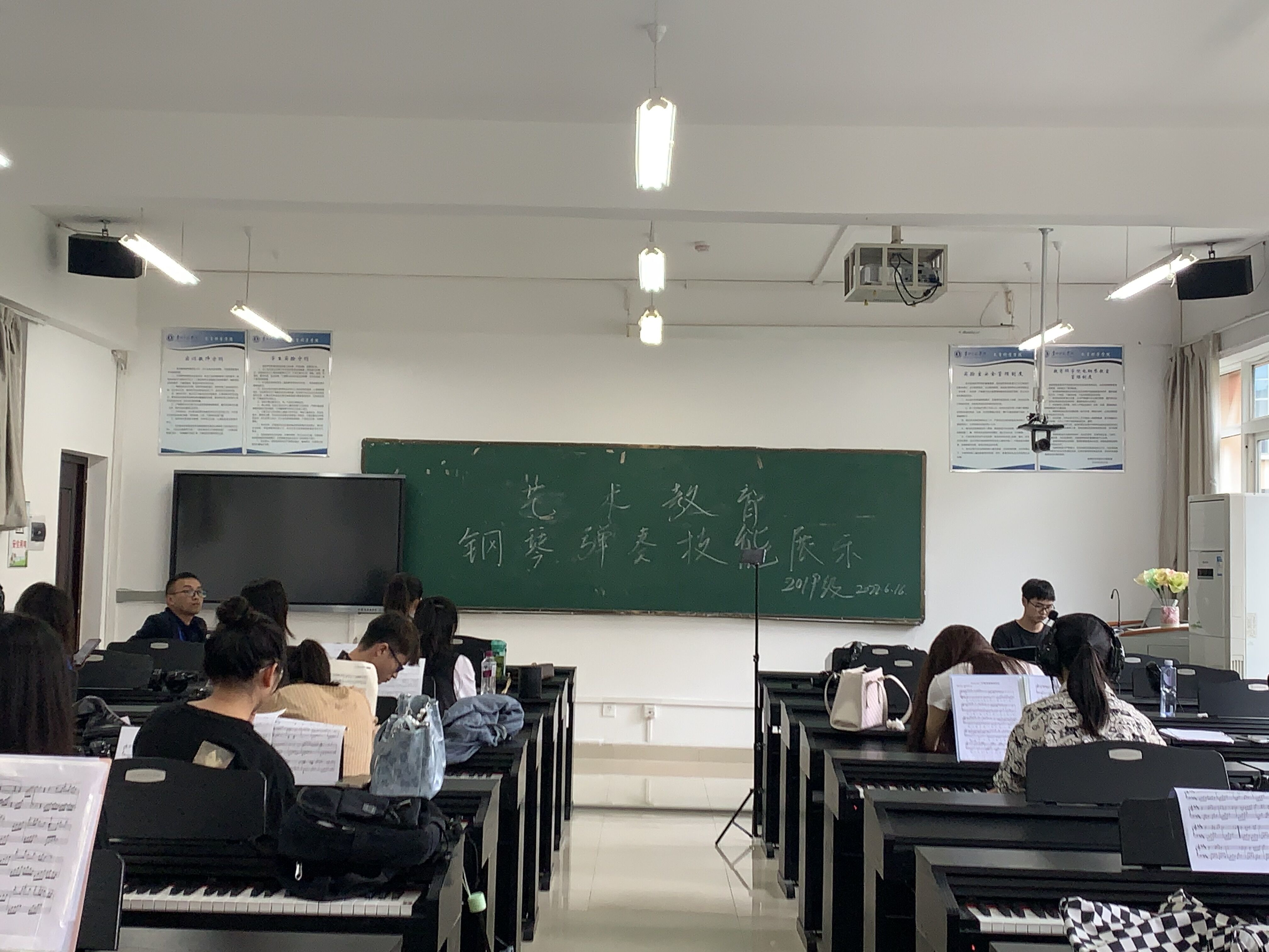 6月16日下午,教育科学学院2019级艺术教育专业音乐方向的25名学生在逸夫楼415教室开展钢琴弹奏技能展示活动。系主任马慧慧老师,任课教师张怡老师,以及莫太极老师参加了本次活动。