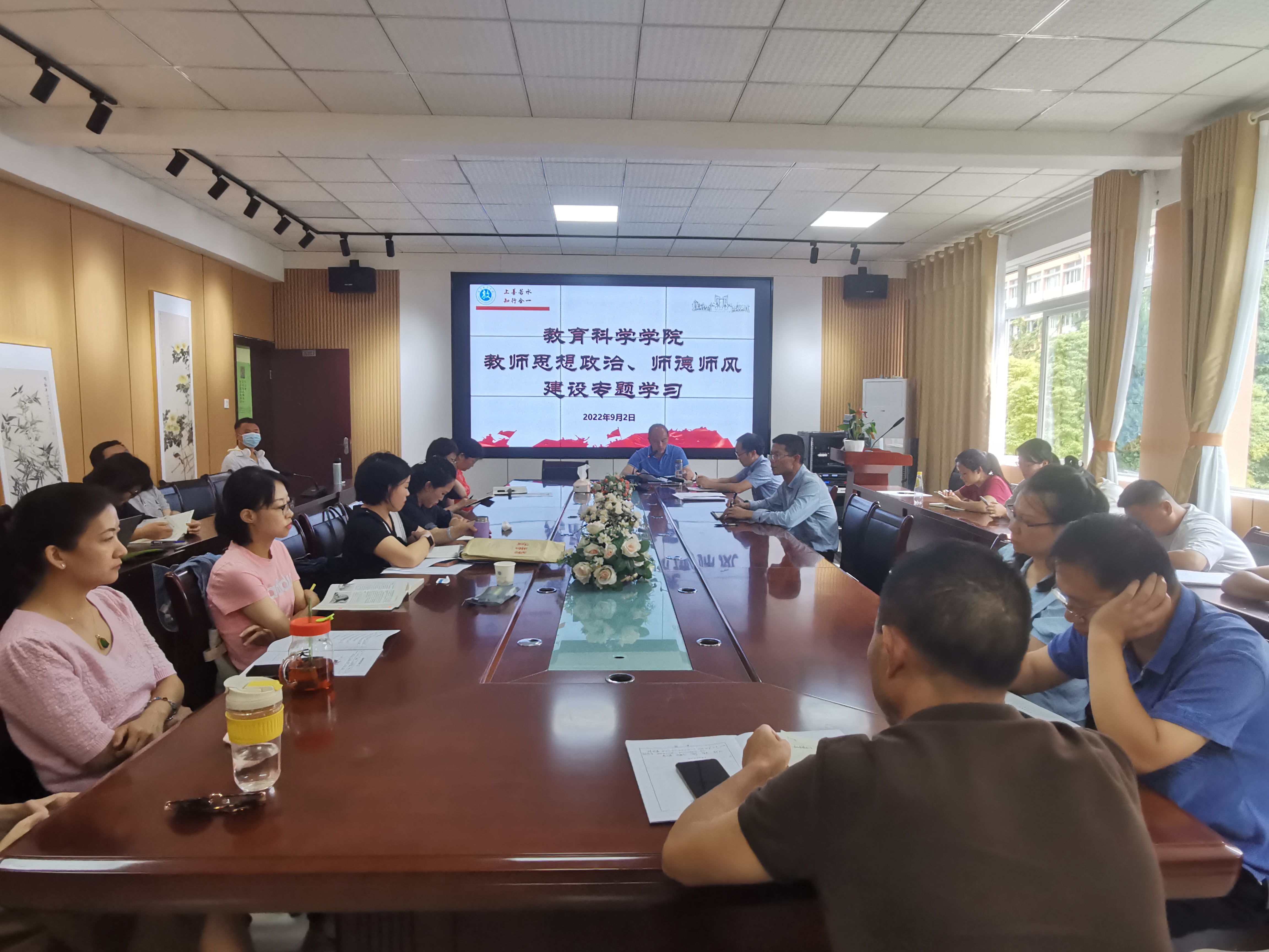 9月2日下午,教育科学学院在会议室召开全院教职工大会,学院党委书记彭祥友组织开展教师思想政治、师德师风建设专题学习。