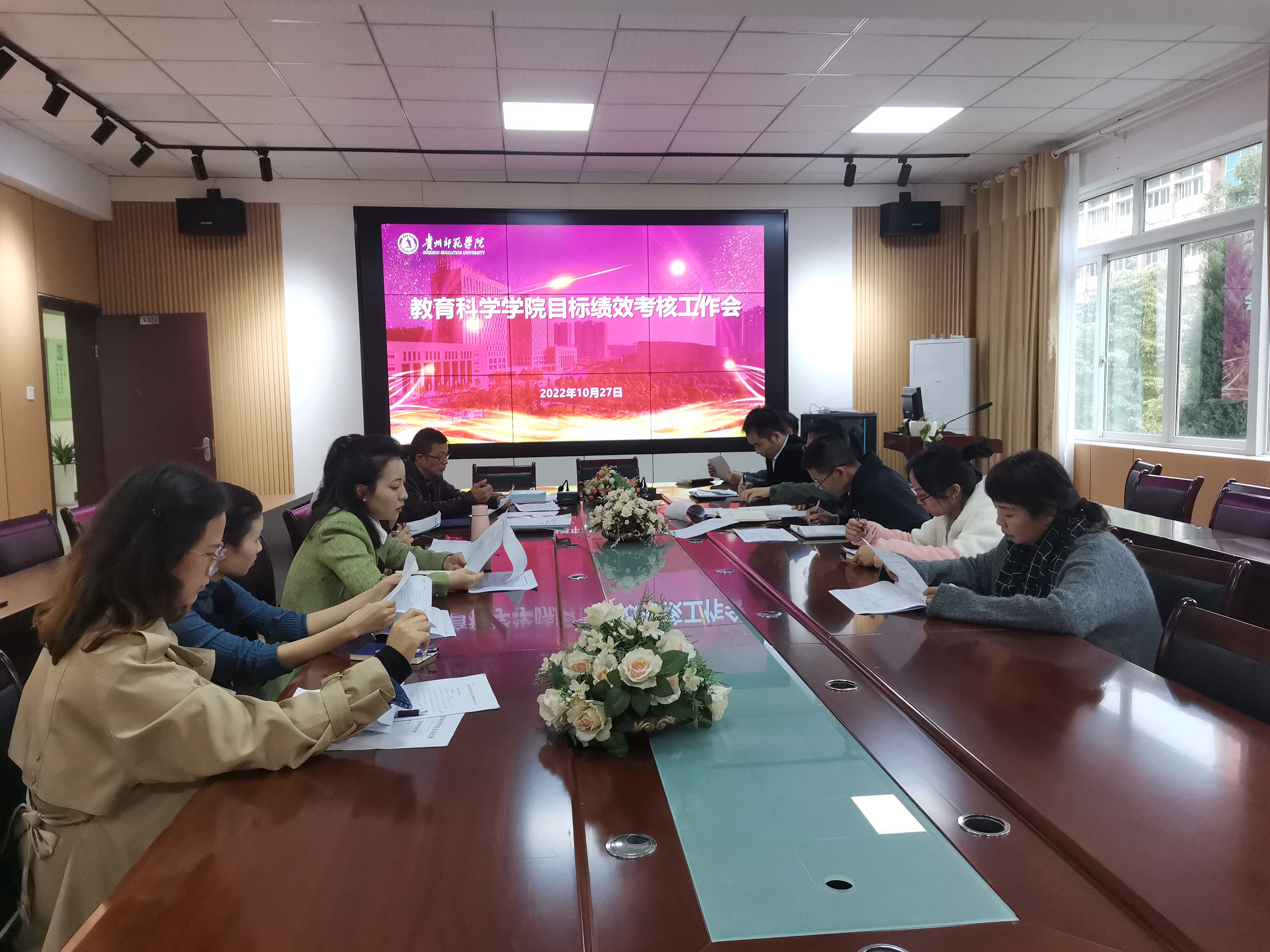 10月27日下午,为了深入贯彻党的二十大精神,落实好学校目标绩效考核工作要求,推动学院党建工作和高质量发展,扎实精准抓好补短板和强弱项工作,学院在开展2022年度目标绩效考核第三季度自查工作基础上,专题召开工作推进会。会议由院长宋万琚主持,参会人员有全体院领导、党政办公室人员、党支部书记、辅导员代表。