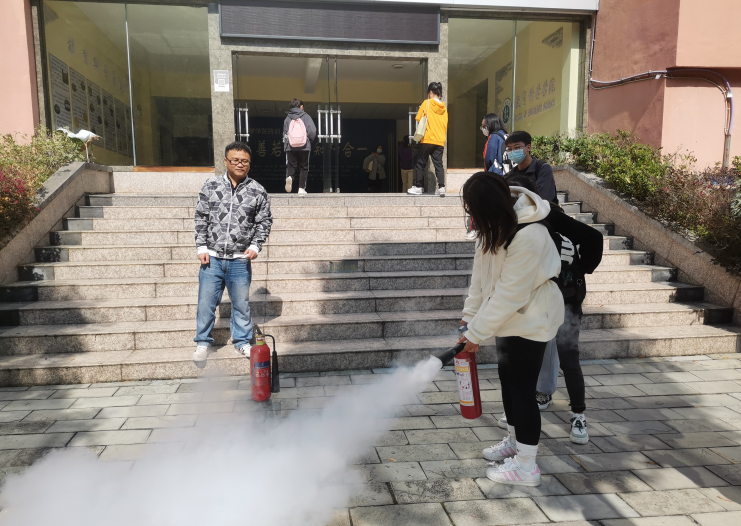 学生的安全工作一直是校园管理工作的重点之一,为加强学生的安全意识,落实学校的安全管理工作,2022年11月3日,教育科学学院唐辉一老师组织应用心理学系、学前教育系、特殊教育系、艺术教育系大一至大三的班级干部在逸夫楼前广场进行实验室安全消防演练。唐辉一老师亲自讲解并演示灭火器的使用方式,之后邀请各班代表进行灭火器使用的实际操作。
