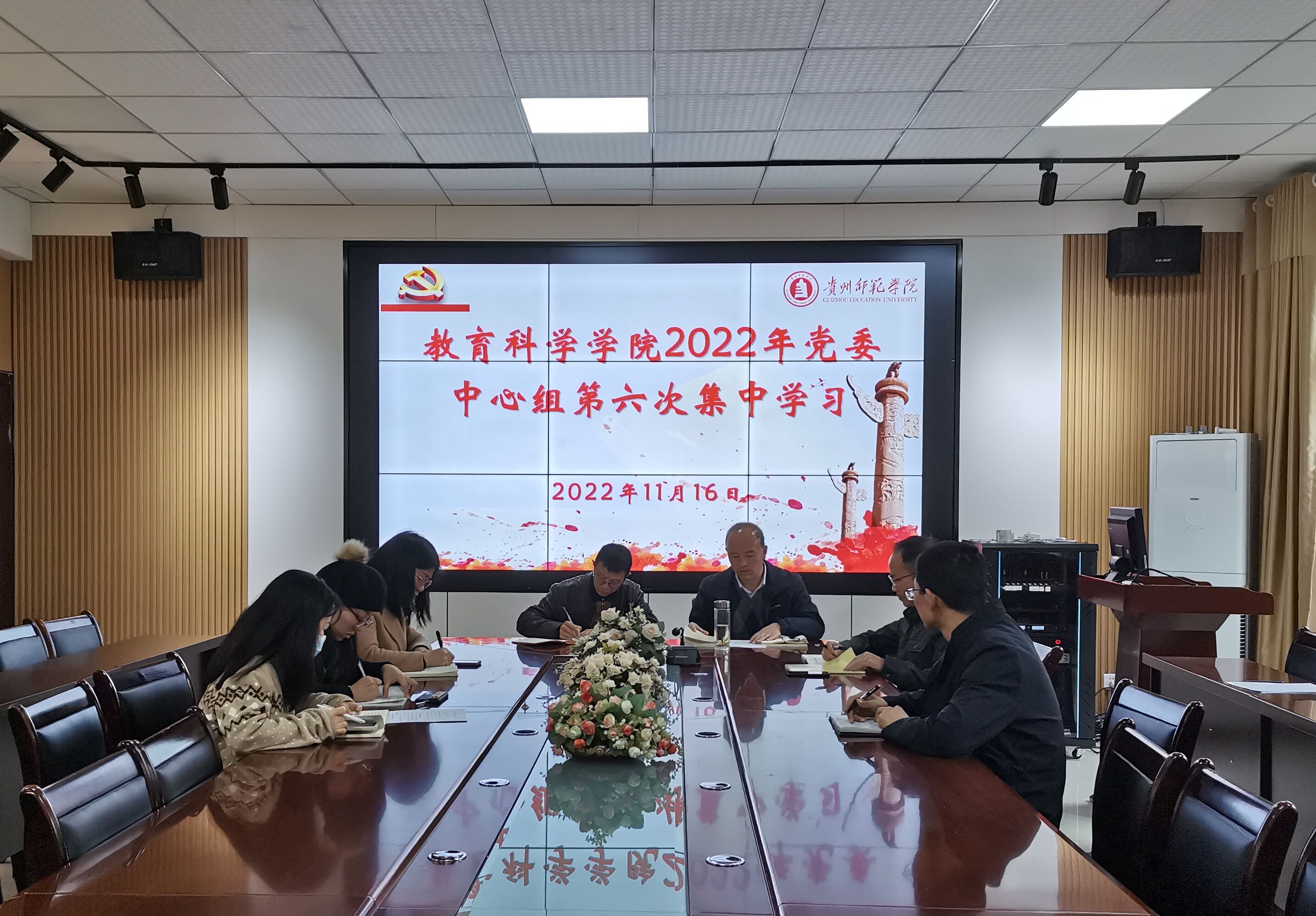 2022年11月16日上午,教育科学学院在学院会议室召开2022年党委中心组第六次集中学习会议,专题学习习近平经济思想和生态文明思想纲要。学院党政领导、党委委员出席,各党支部书记、党政办公室主任列席。会议由院党委书记彭祥友主持。