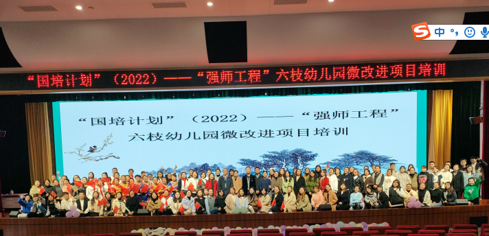 贵州师范学院“国培计划(2022)”—“强师工程”六枝特区幼儿园微改进行动专题培训项目结业晚会于2022年11月16日晚上,在贵州师范学院综合实训楼301举行。贵州royal皇家88平台彭祥友书记,傅小芳副书记,袁川副院长,组织员赵政,1班的教学班主任冯静和生活班主任李琴,2班的教学班主任黄蓉和生活班主任沈洁,幼儿园微改进班100名学员教师以及学前教育系的本科学生参加了本次结业晚会。