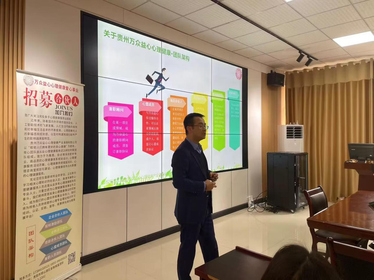 此次招聘会主要面向我院应用心理学专业的学生。学院领导对本次招聘会高度重视,副书记傅小芳、应用心理学系系主任倪磊前往招聘会现场细心地询问招聘单位的详细情况。随后,贵州万众益心心理健康产业发展有限公司通过播PPT展示、面对面交流等方式向同学们介绍了公司的概况、职业发展的方向、人员需求等方面的内容。