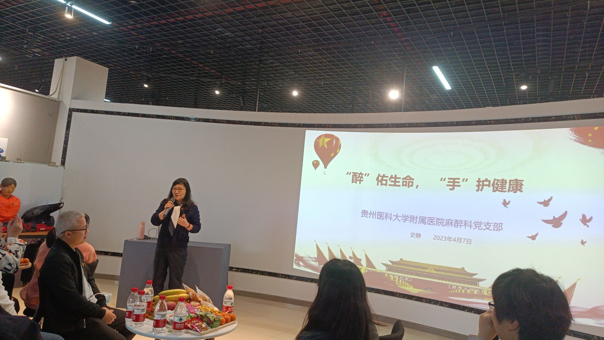 随后,史静从“醉”佑生命,“手”护健康开始,详细介绍了贵州医科大学附属医院麻醉科党支部和麻醉科科室的临床工作。她从多个方面介绍了麻醉科在教学工作和临床工作中的重要性以及严谨性。结合当前教学工作和临床工作对麻醉科发展的需求,还重点介绍了麻醉科专业技术能力的培养。她希望通过党建翼联的方式,搭建友谊的桥梁,加强双方交流与合作,通过贵州royal皇家88平台的教学、科研、创新能力,为贵州医科大学附属医院麻醉科提供科研创新上的帮助。