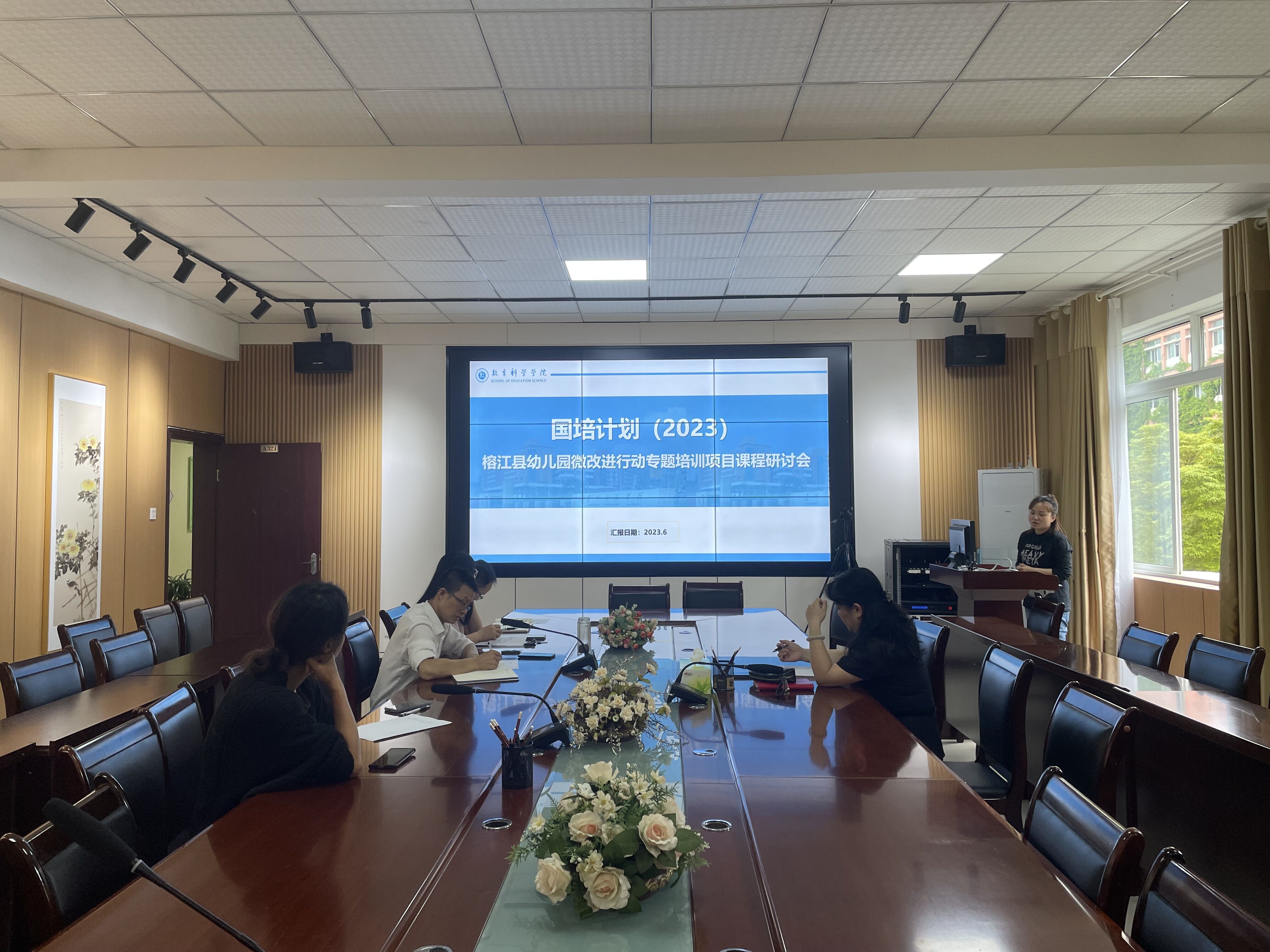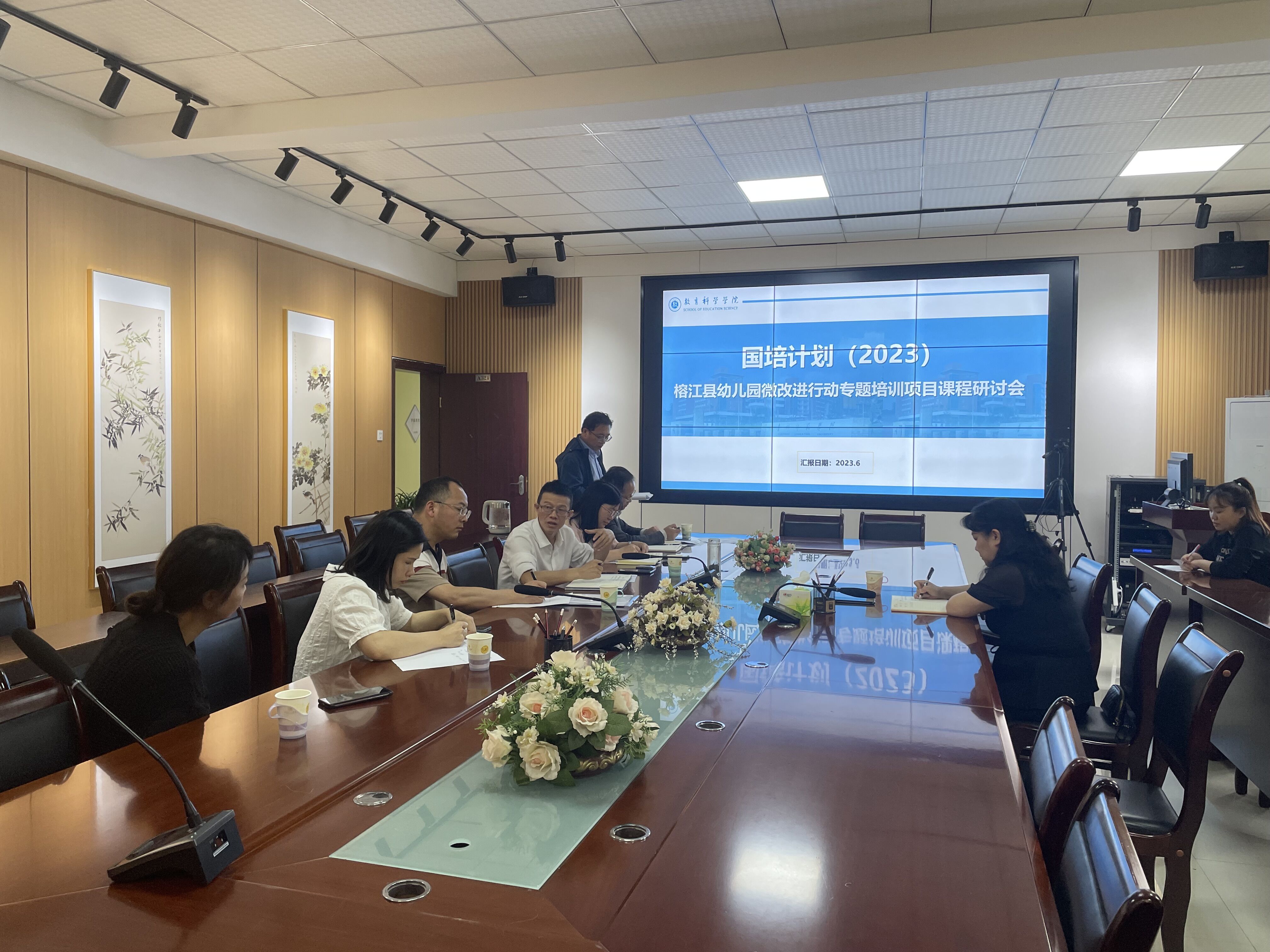 2023年6月15日上午,“国培计划(2023)”——榕江县幼儿园微改进行动专题培训项目课程研讨会在逸夫楼教育科学学院会议室A321举行。本次研讨会由教育科学学院项目负责人陈泽婧主持,继续教育学院党委书记韦丹、教育科学学院院长宋万琚、教育科学学院党委副书记傅小芳、教育科学学院副院长黎平辉、继续教育学院教师姚晓峰、教育科学学院教师汤艳玲、教育科学学院教师李琴参加了本次会议。
