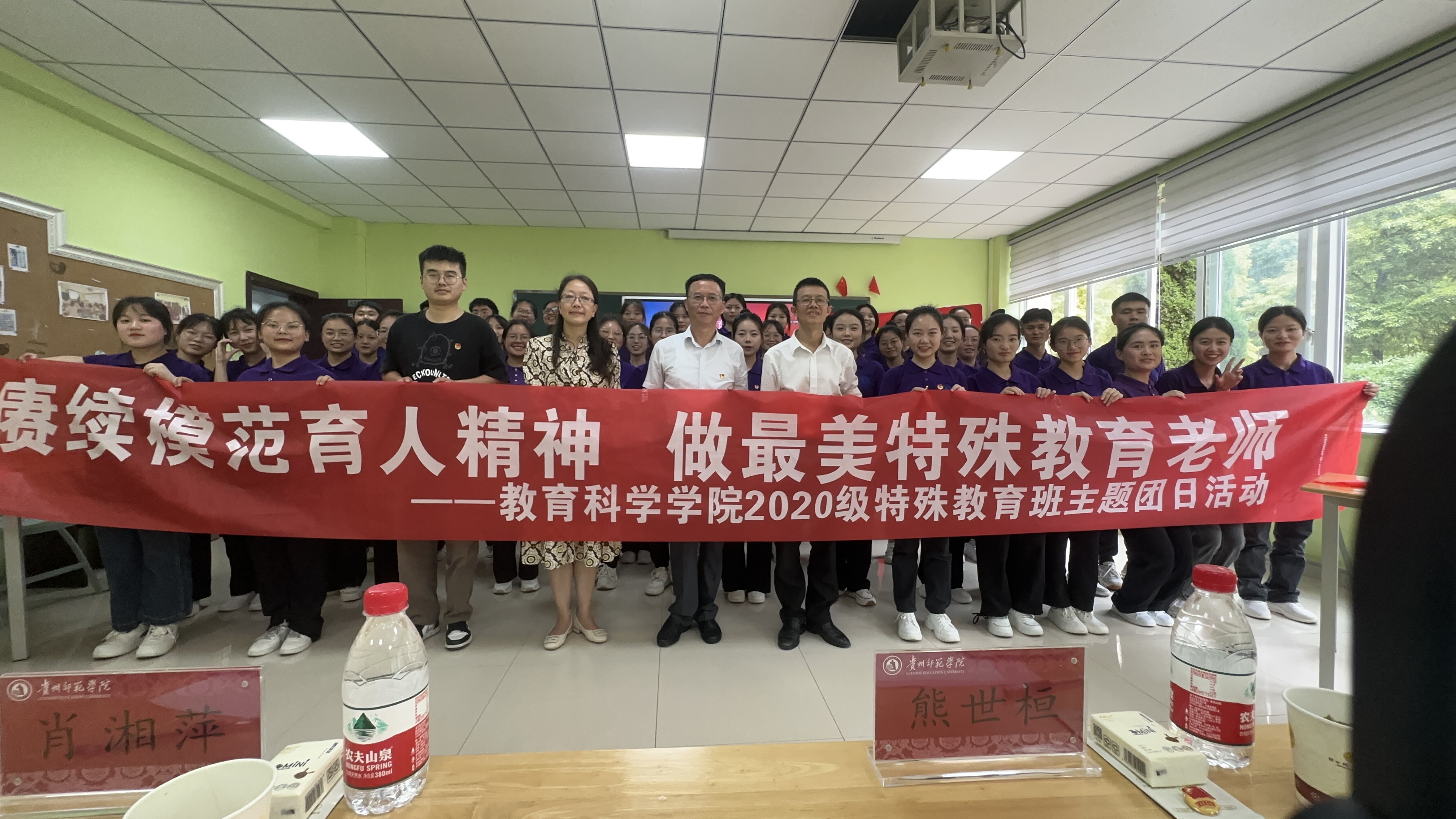 2023年6月28日,校党委副书记熊世桓来到教育科学学院,走进心理咨询中心活动室参加2020级特殊教育班团支部题为“赓续模范育人精神 做最美特殊教育老师”的主题团日活动,祝福并勉励青年学子,要切实肩负起新时代新征程党赋予青年的使命。校团委组织部教师马源、教育科学学院党委书记肖湘萍、院长宋万琚、副书记傅小芳、辅导员申苒共同参加了本次活动。活动由班级团支书王林艳主持。