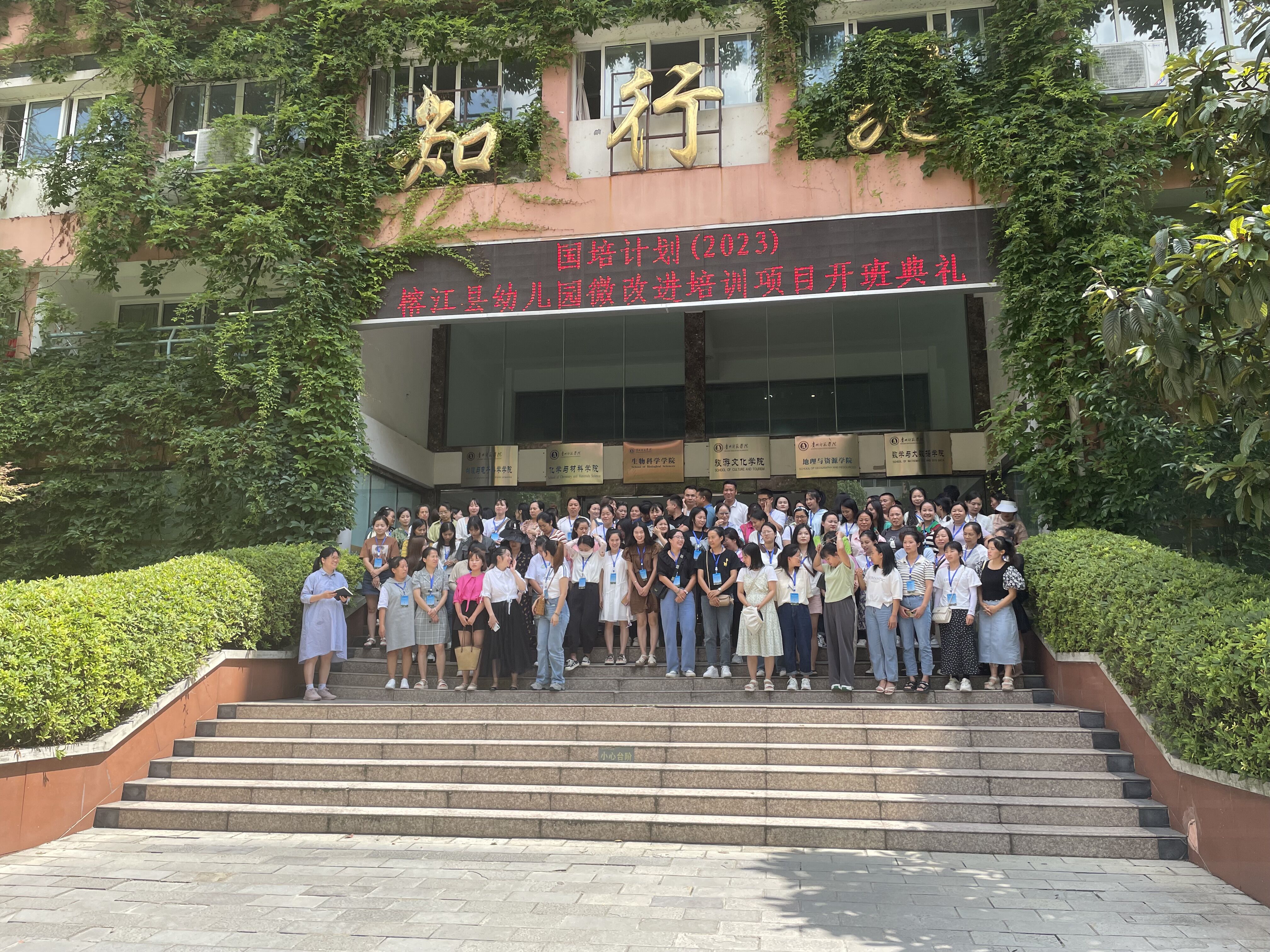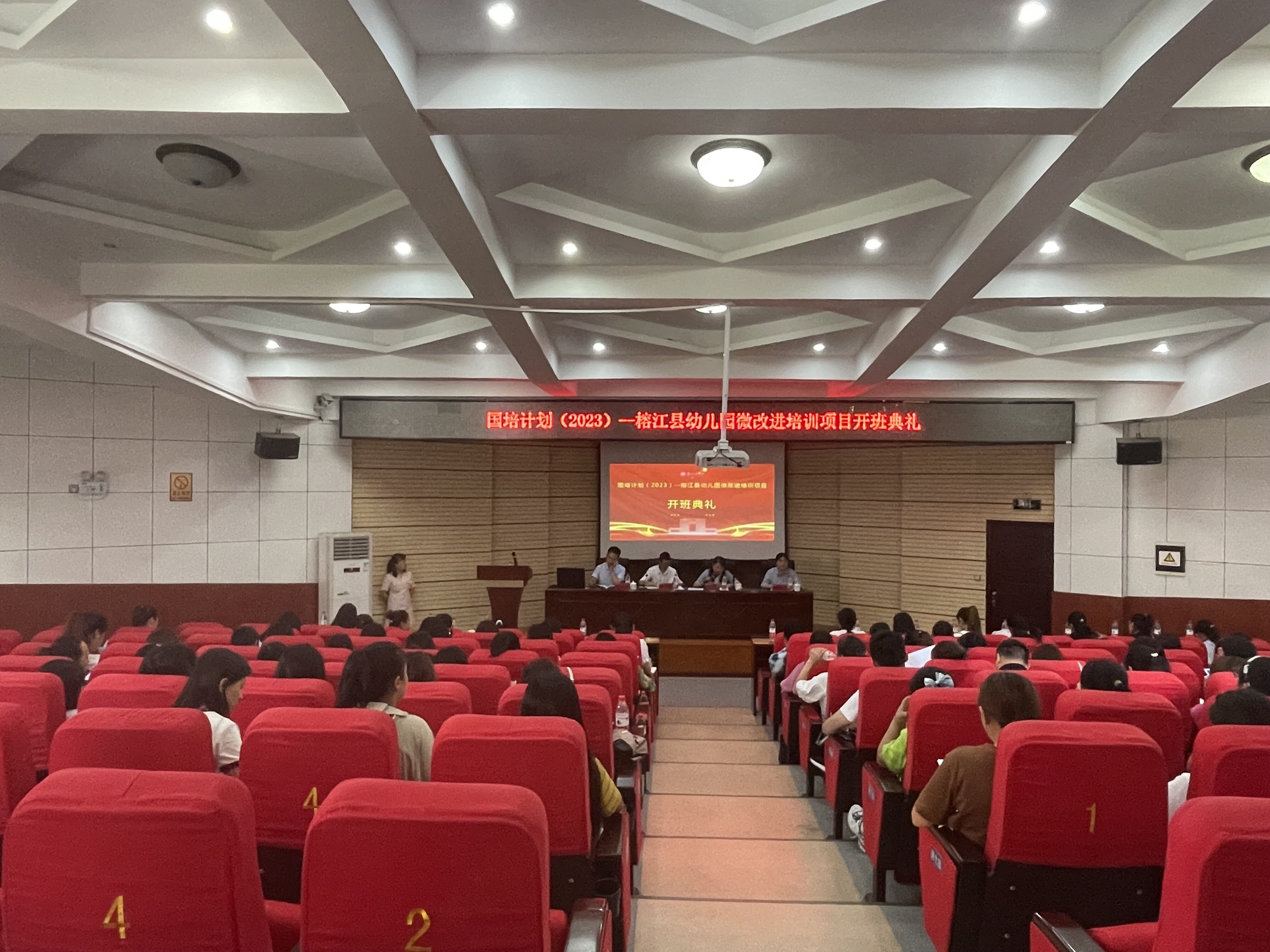 2023年6月26日下午,“国培计划(2023)——榕江县幼儿园微改进行动专题培训”开班典礼在贵州师范学院宁静楼150教室开展。贵州师范学院继续教育学院党委书记韦丹、教育科学学院院长宋万琚、党委副书记傅小芳、副院长袁川、教师陈泽婧、李琴以及100名学员参加了开班典礼。本次典礼由教育科学学院学前教育系教师陈泽婧主持。