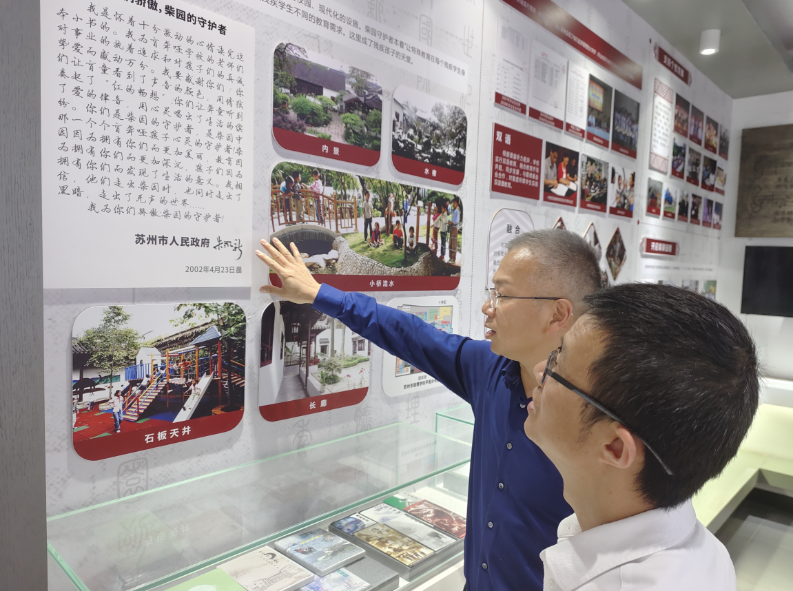 成立于2014年的苏州市特殊教育指导中心位于苏州市盲聋哑学校内,承担着整个苏州市的特殊教育巡回指导、师资培训、融合教育推广和管理等工作。苏州市特殊教育指导中心主任、苏州市盲聋哑学校校长吴建东带领宋万琚等人参观了市特殊教育资源中心、学校职业教育平台、柴园、校史馆等地,并介绍了资源中心建设情况、学校精神文化风貌、发展历史等。