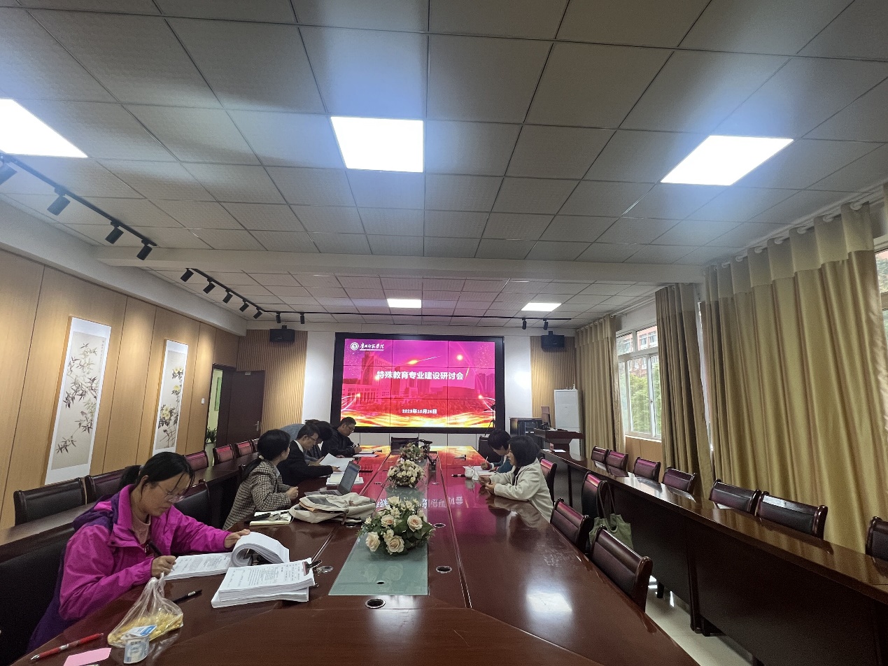 2023年10月26日下午,教育科学学院特殊教育系在学院会议室召开了特殊教育专业建设与发展研讨会。出席本次研讨会的有教科院党委书记肖湘萍,院长宋万琚、副院长黎平辉、特教系主任雷经国、以及特教系教师杨娟、夏卉芳、杨曼、邓秀平、罗艳华等,会议由教育科学学院副院长黎平辉主持。