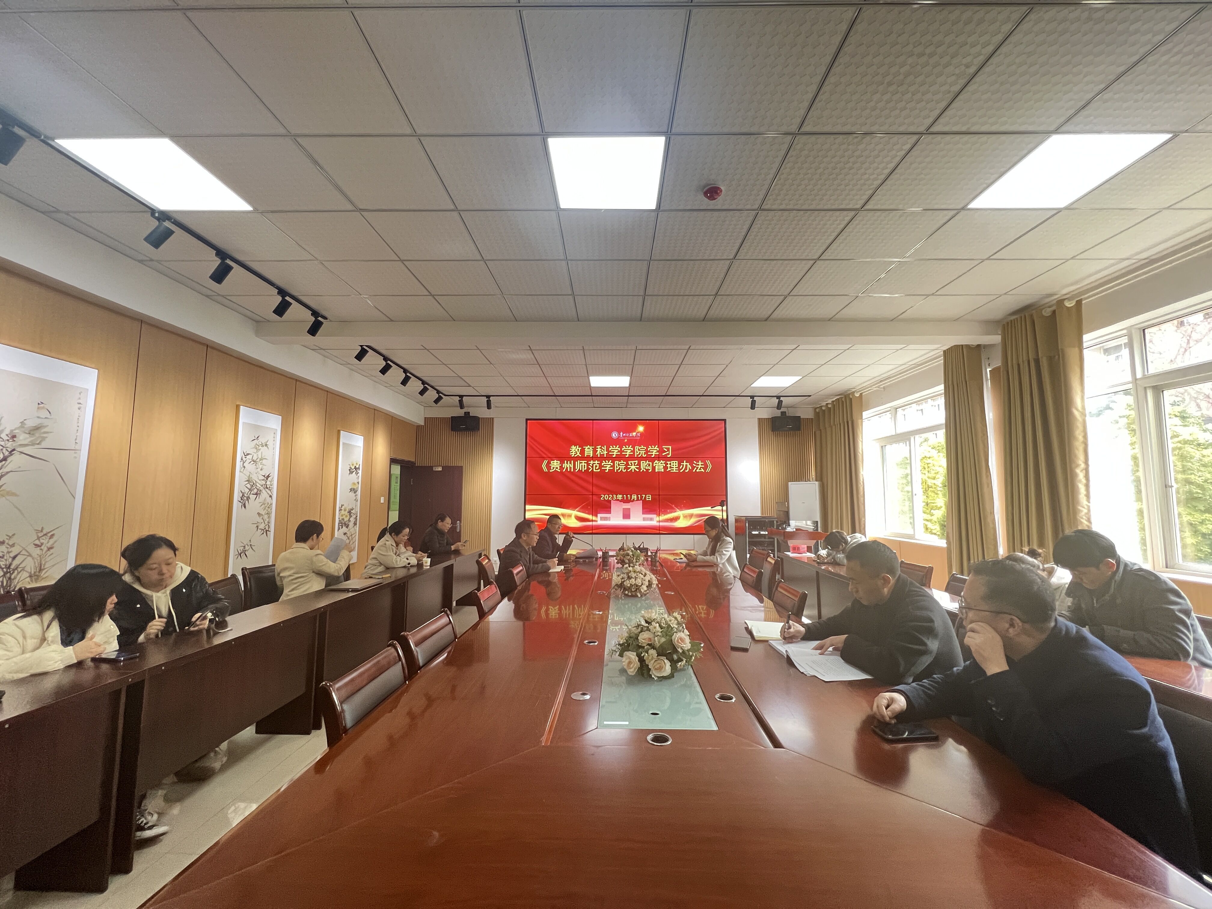 2023年11月17日下午,教育科学学院组织全体教职工在学院会议室学习《贵州师范学院采购管理办法》(贵师范发(2023)72号)。本次会议由教院长宋万琚主持。