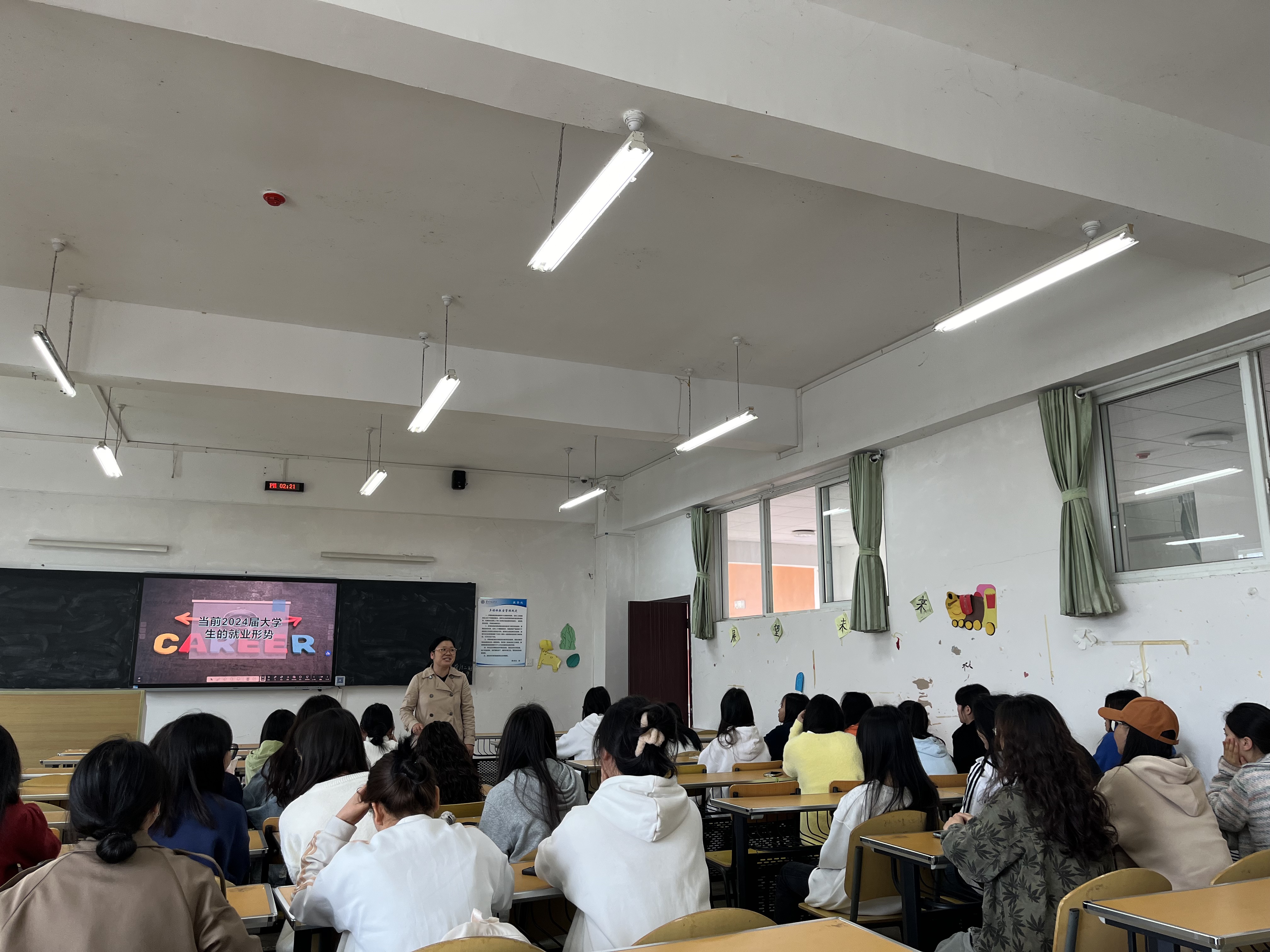 4月9日,教育科学学院党委副书记傅小芳在逸夫楼502教室为20级学前教育专升本班学生开展了题为《当前2024届毕业生就业形势》的宣讲会。