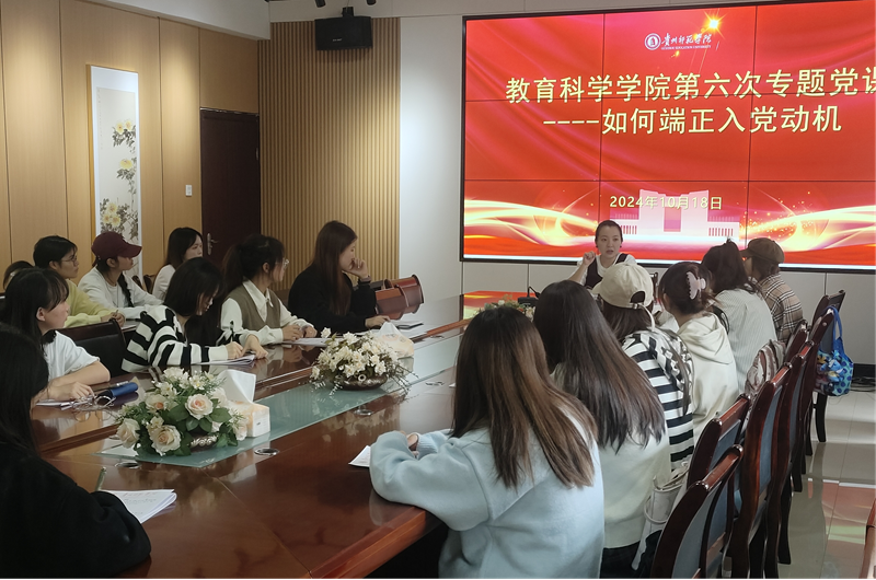 2024年10月18日,教育科学学院在逸夫楼321会议室开展第58期入党积极分子培训班讨论课。本次党课由教育科学学院团委书记张源组织开展。