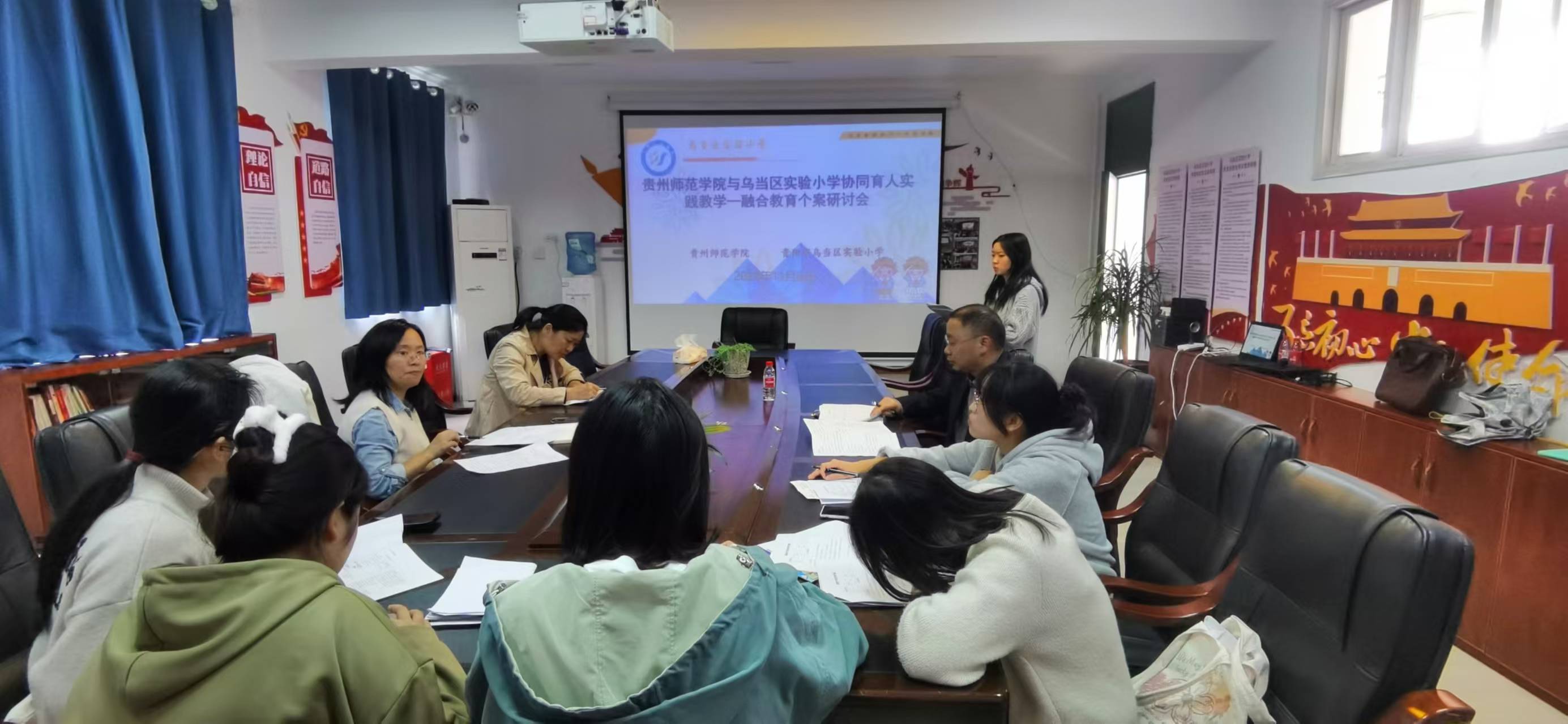 会议聚焦于融合教育个案,通过专业评估、观察与分析,为随班就读儿童制定个别化支持方案。在研讨会上,贵州师范学院的本科生们针对随班就读儿童的基本情况,学校适应现状,把握学情与融合需求,基于这些评估结果,他们与实验小学的教师团队共同探讨并制定了针对性的个别化支持方案,以期为随班就读儿童提供更加适宜的教育环境和资源。龙珊强调:“融合教育是实现教育公平的重要途径,我们希望通过与贵州师范学院的合作,不断提升教师的专业能力,为所有儿童提供平等的教育机会。”傅小芳表示:“此次研讨会是我院与乌当区实验小学协同育人实践教学的一部分,我们希望通过这样的活动,让学生将理论知识与实践相结合,同时也为特殊教育领域的发展贡献力量。”