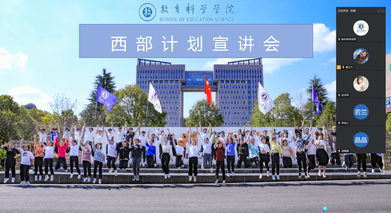 2025年3月5日,贵州royal皇家88平台通过线上平台成功举办了西部计划宣讲会。本次会议旨在向广大教科院学生深入宣传西部计划的重要意义,激发同学们的参与热情,为投身西部建设贡献青春力量。此次会议由学院团委书记张源老师担任主讲嘉宾,团委负责人李姿雨老师担任主持人。