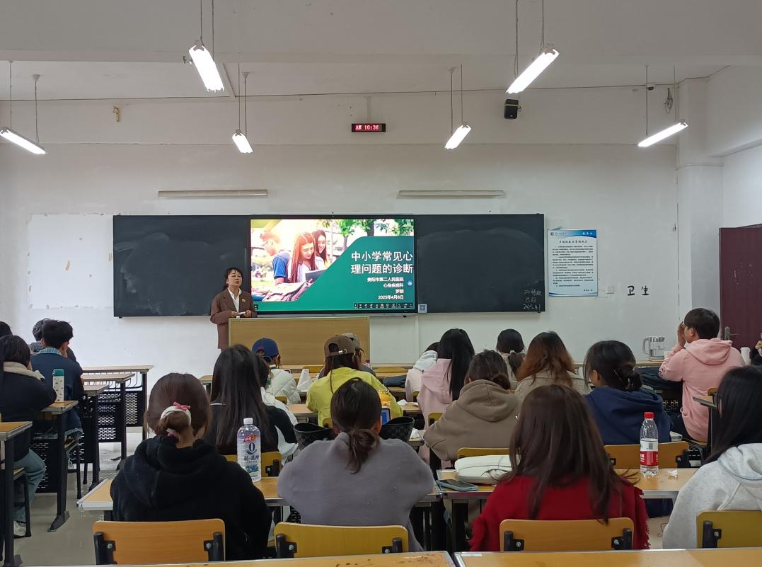 2025年4月8日,贵阳市第二人民医院心身疾病科主任医师罗颖走进校园,为教育科学学院应用心理学专业2022级学生带来“中小学常见心理问题的诊断”专题讲座。此次讲座紧密围绕专业核心技能,深度解析中小学心理问题诊疗要点,助力学生筑牢实践根基。