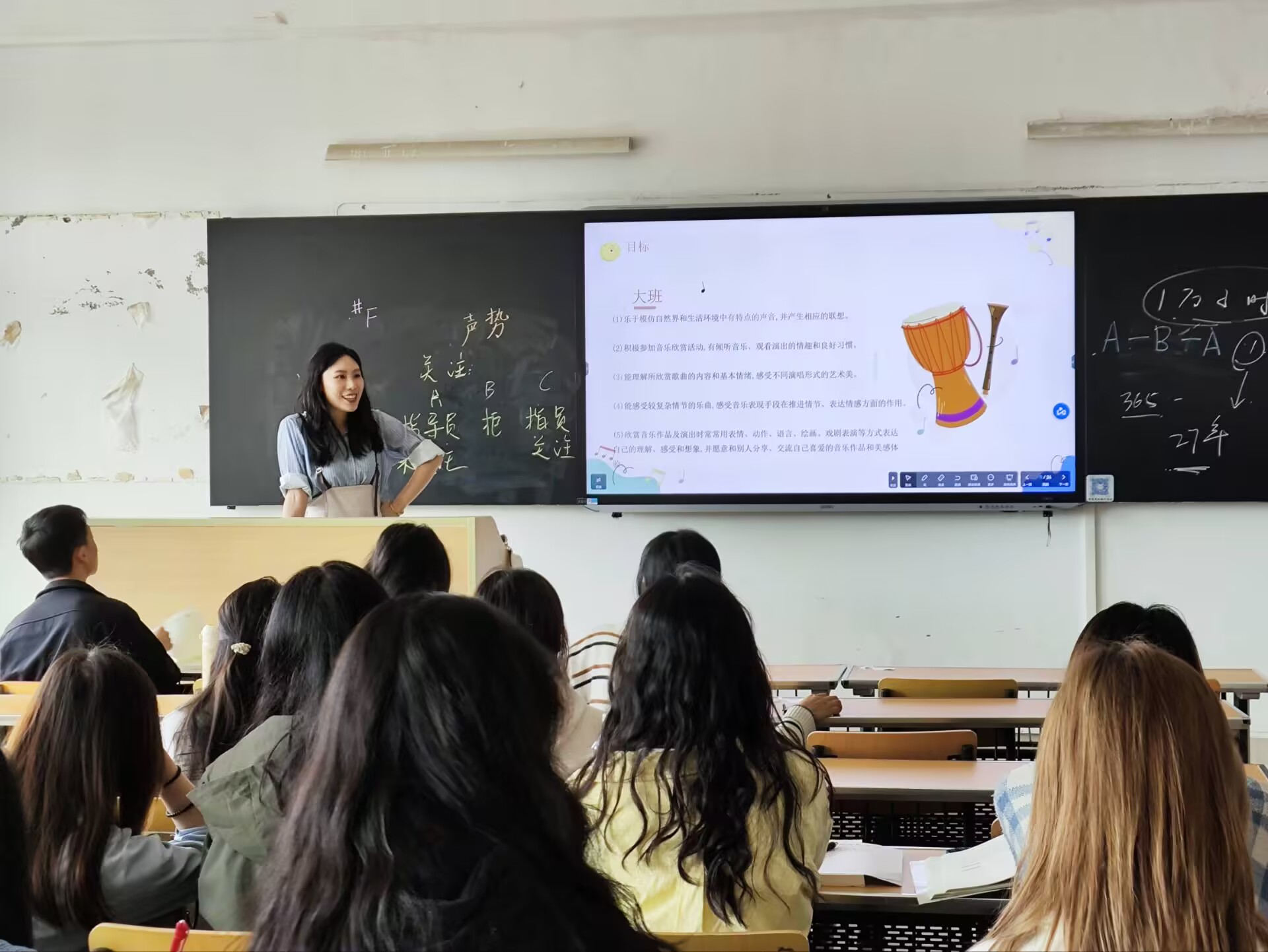 2025年5月29日,一堂别开生面的学前教育专业艺术领域课在贵州royal皇家88平台《学前儿童艺术教育》课堂上展开。与以往不同,此次授课的老师是云岩区第九幼儿园的肖雪倩老师,她以独特的教学视角和丰富的实践经验,为大学生们带来了一堂充满童趣与创意的音乐欣赏课。